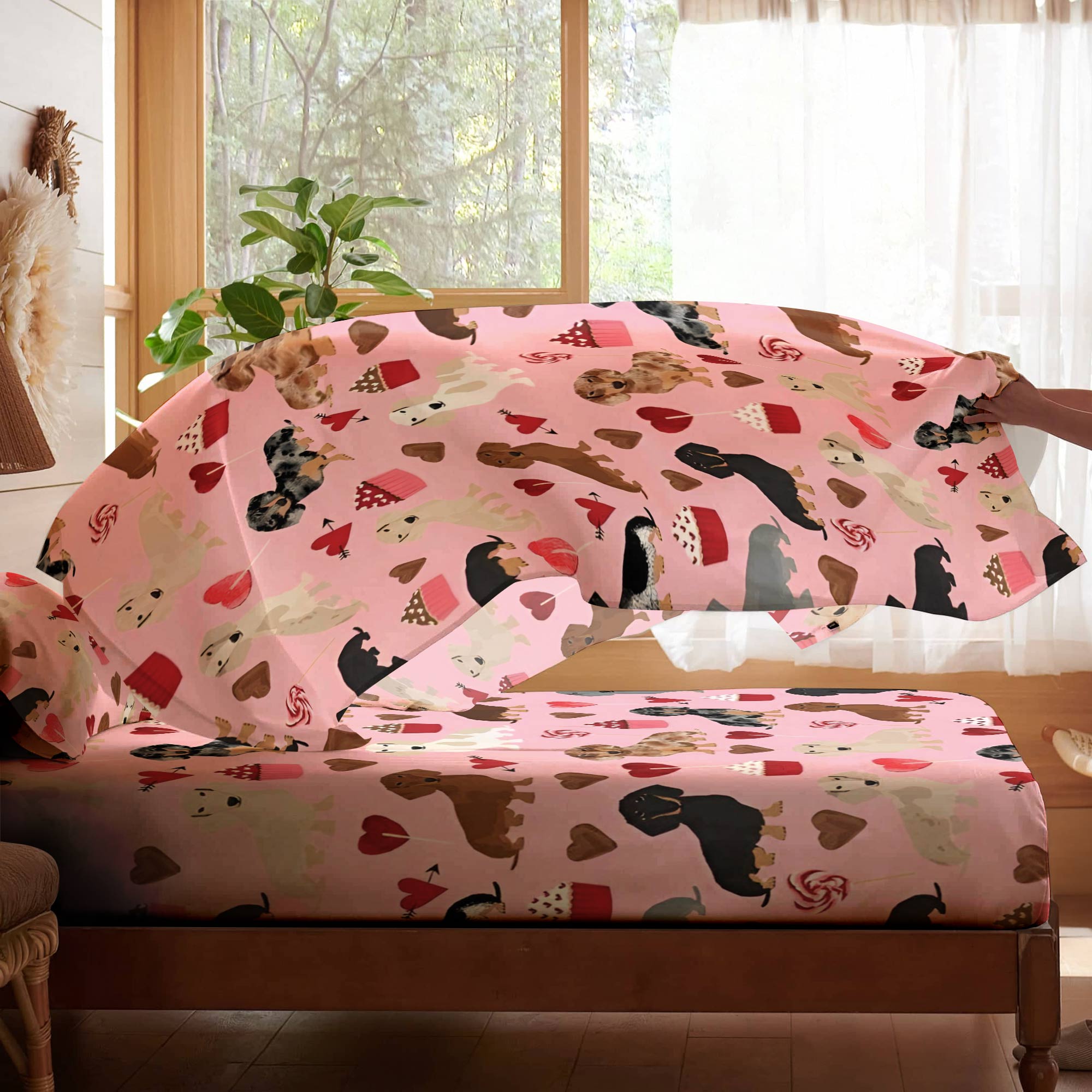 Dachshine 4-Piece Bed Sheet Set Pinky Dachshunds