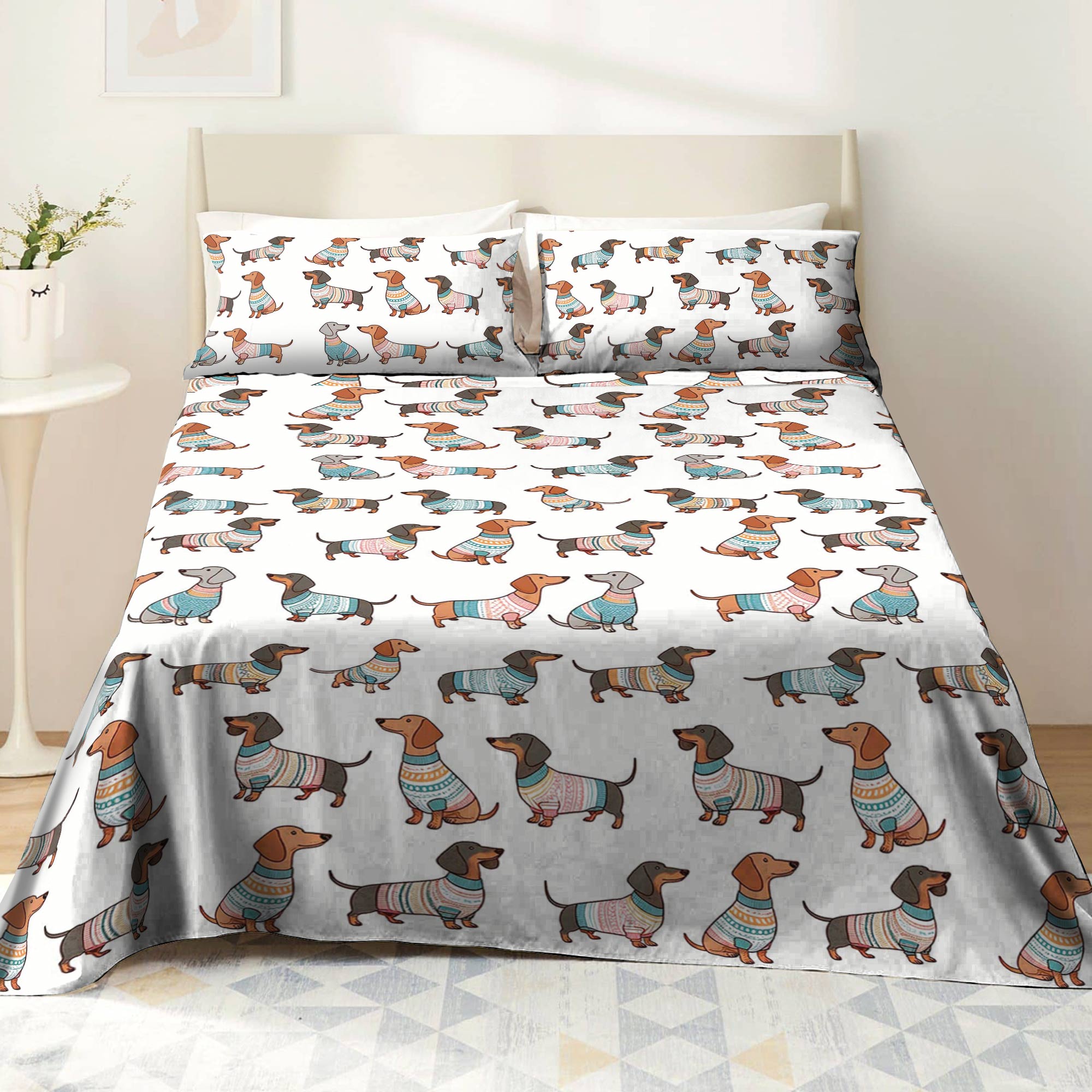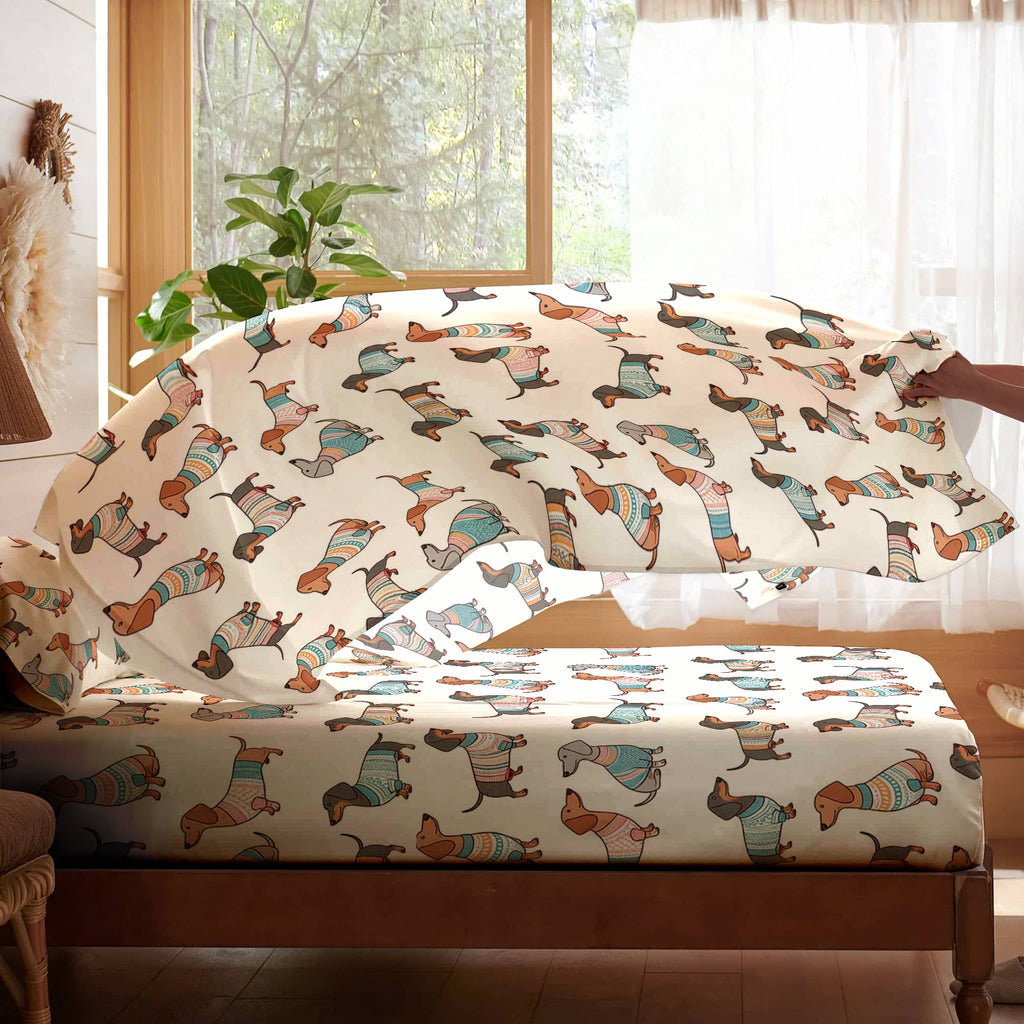 Dachshine 4-Piece Bed Sheet Set Playful Dachshunds