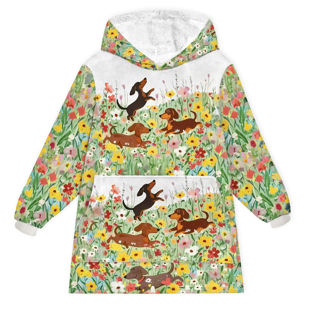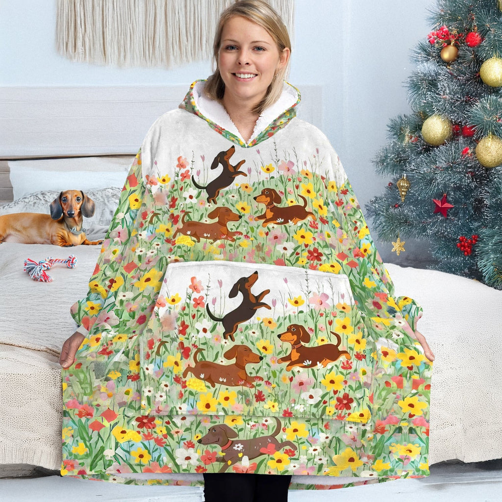 Dachshine Blanket Hoodie - Dachshund in Flower Garden