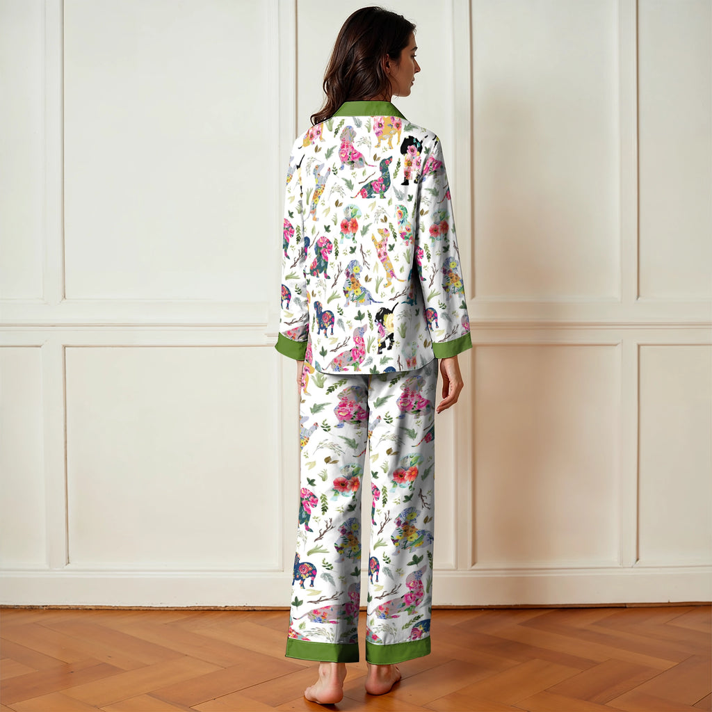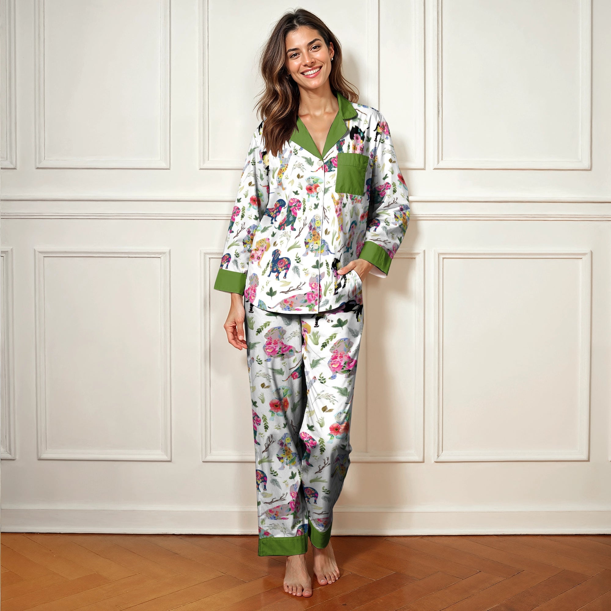 Wrap yourself in comfort with this charming and artistic sleepwear, where floral-patterned dachshunds bloom across the fabric like a joyful garden in spring. The soft blend of watercolor florals and whimsical dog silhouettes brings a sense of calm, cheer, and playfulness to your bedtime. Made from lightweight, cozy fabric, it’s perfect for dog lovers who adore both elegance and fun in their everyday moments.