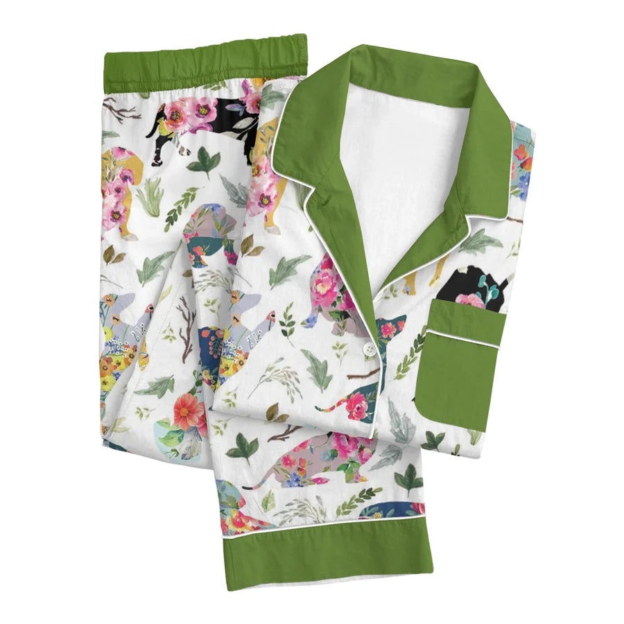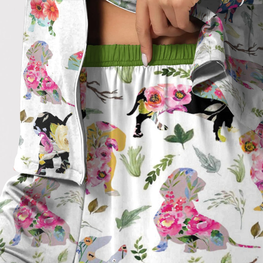 Dachshine Pajamas Top & Pant Floral Pup Parade