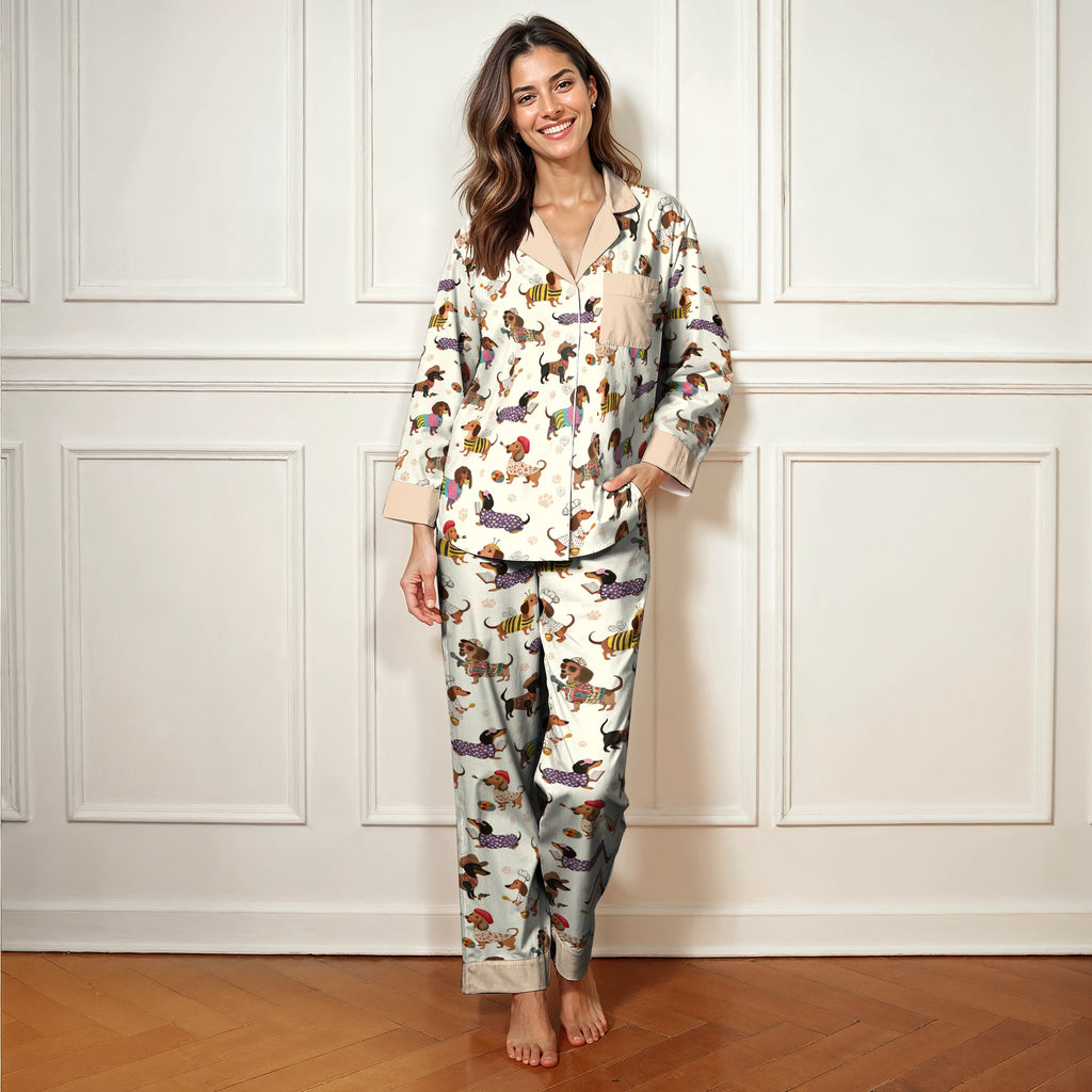 Dachshine Pajamas Top & Pant Busy Weenie Town