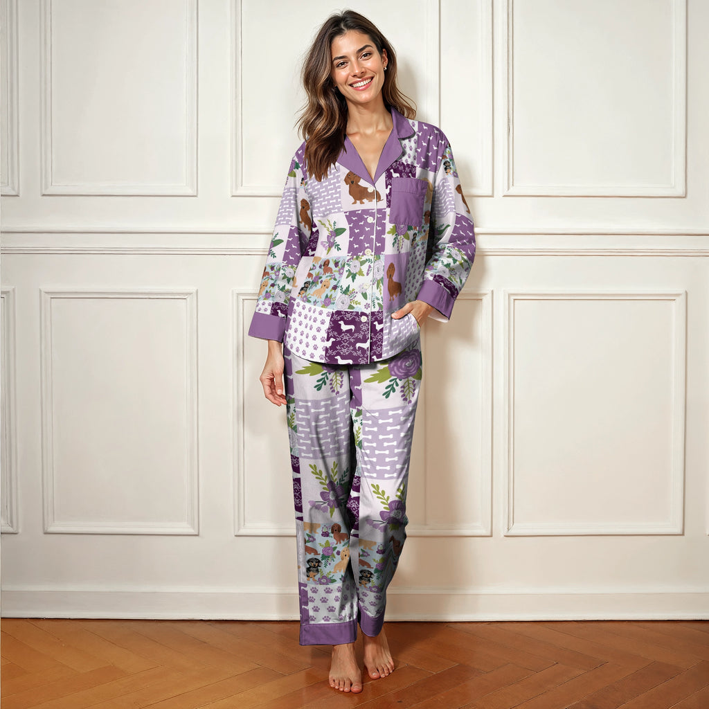 Dachshine Pajamas Top & Pant Purple Paw Parade