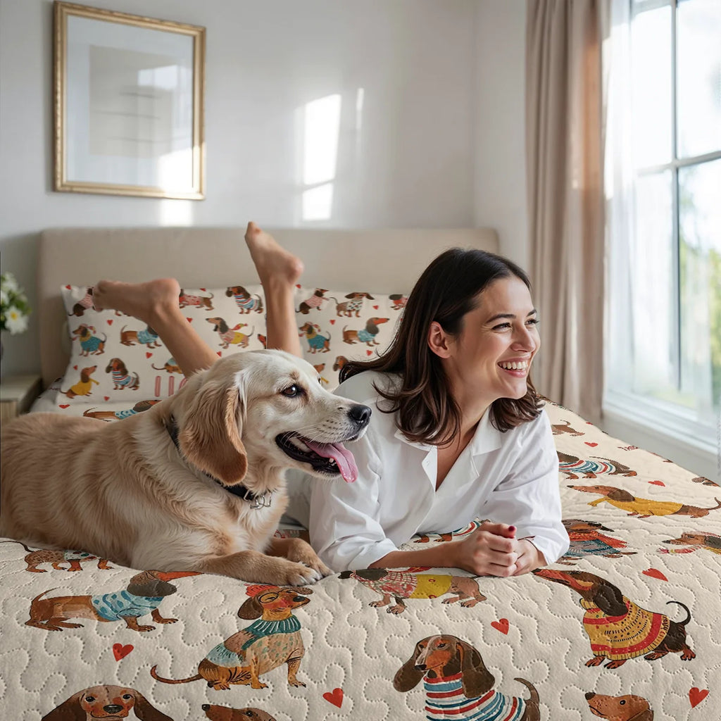 Dachshine Quilt 3-Piece Set Dachshund Amazing Stylish