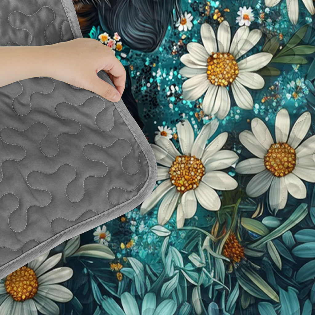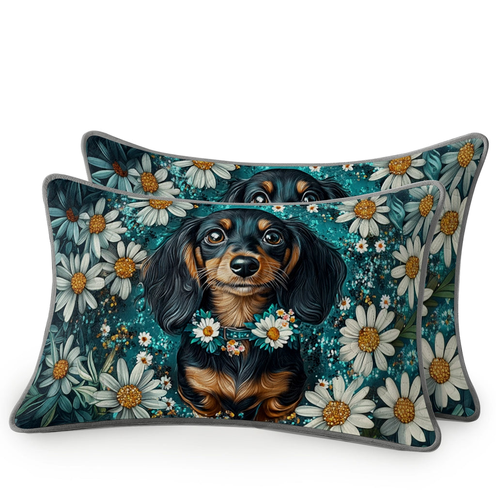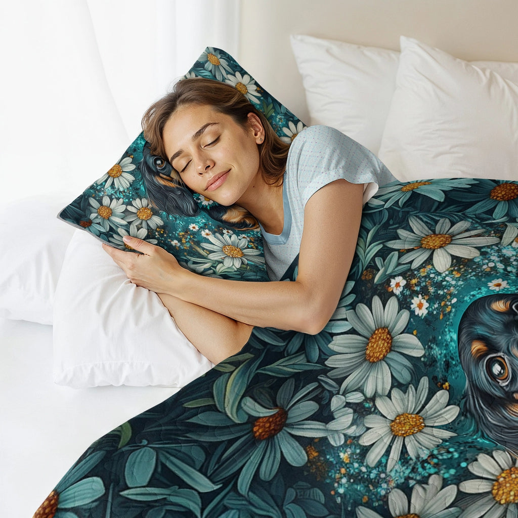 Wrap yourself in comfort with this daisy garden dachshund-themed quilt set, where dachshunds beautifully painted in realistic floral portrait style sitting serenely among blooming white daisies with teal greens, soft whites, and golden yellow accents and detailed petals, glowing highlights, and dreamy composition not only add charm to your bedroom but also bring a sense of elegance, gentleness, and floral serenity. Made from soft, lightweight fabric, this is the perfect choice for anyone who loves dachshunds and wants to feel connected to their furry friend even in their dreams.
