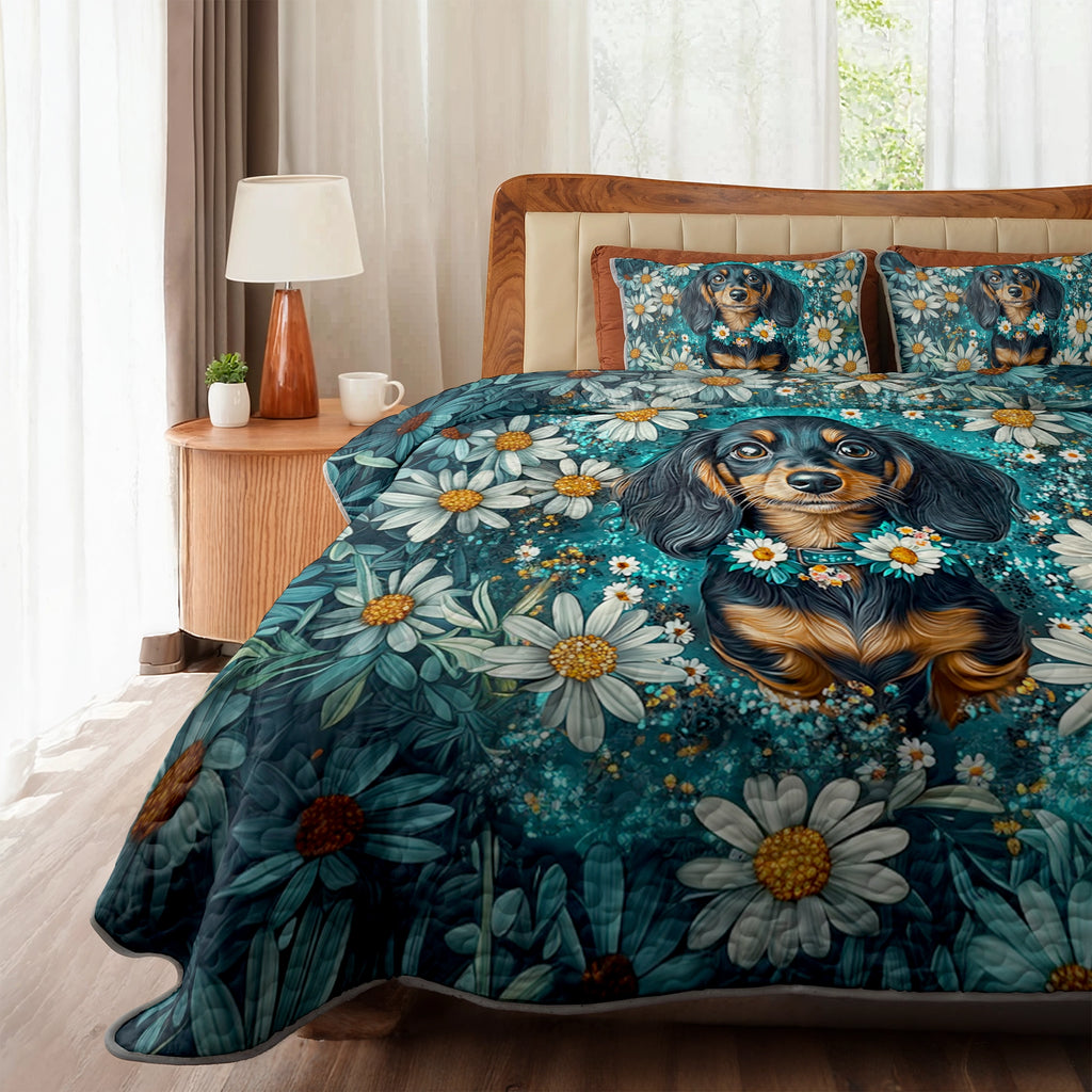 Dachshine Quilt 3-Piece Set Daisy Garden