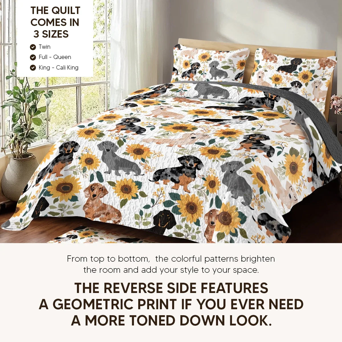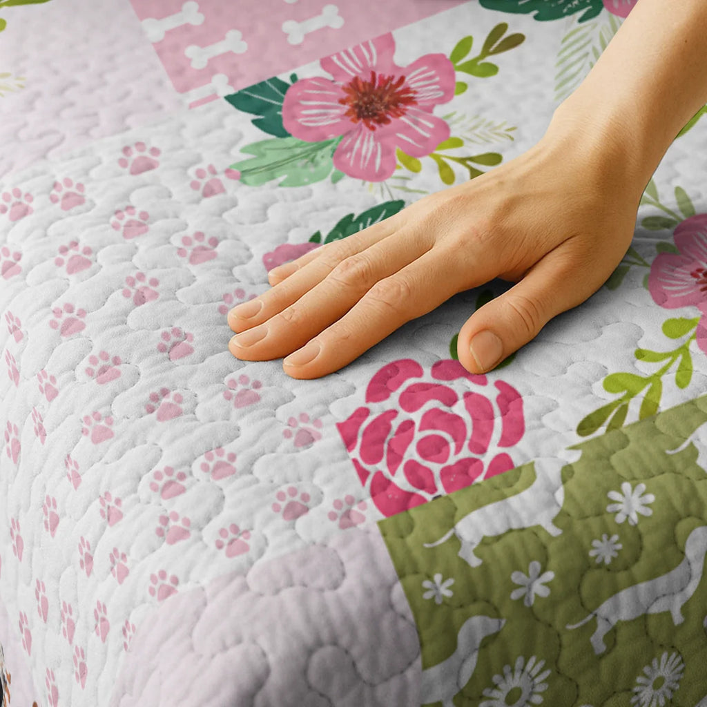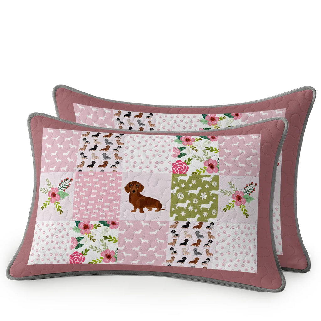 Dachshine Quilt 3-Piece Set Floral Doxie Patch