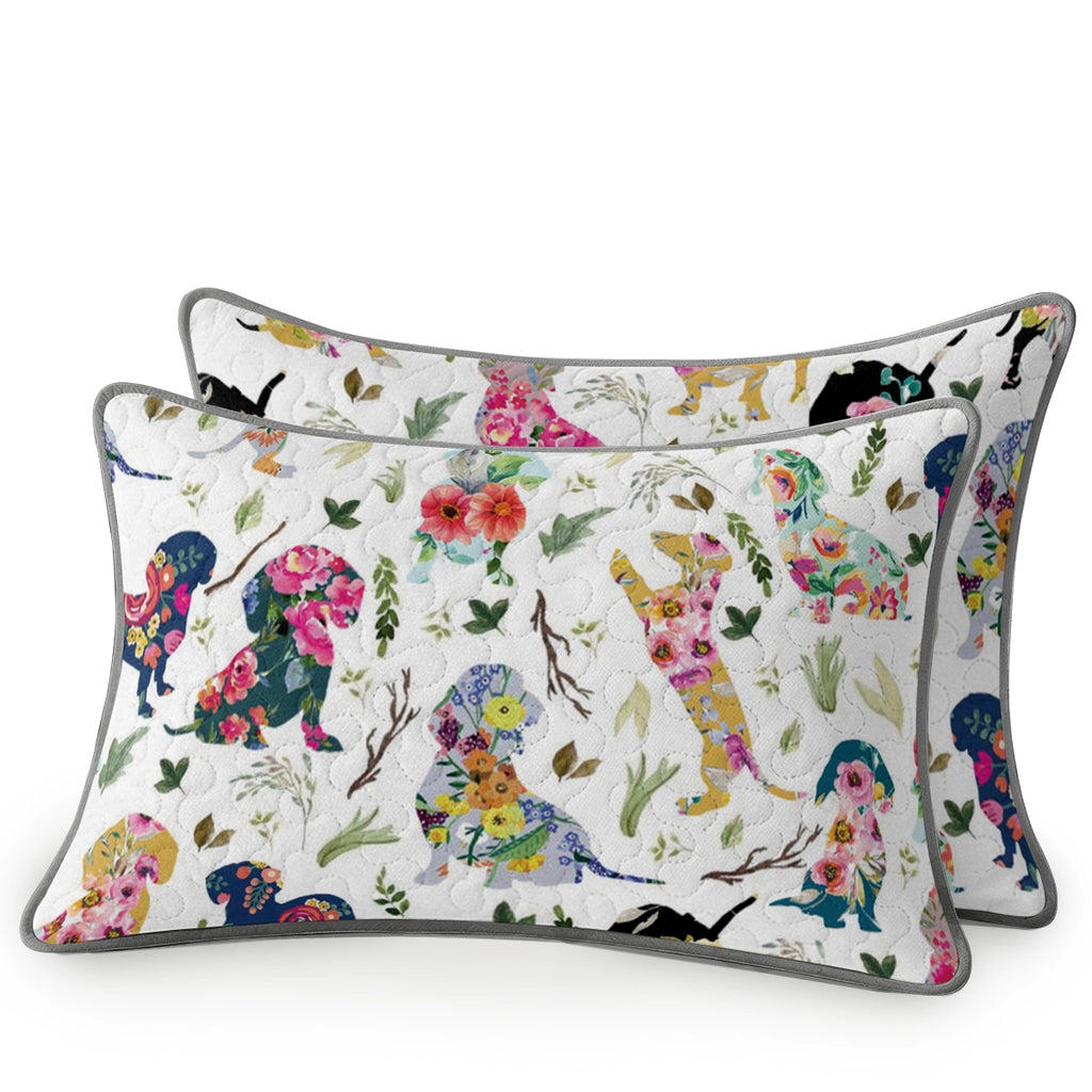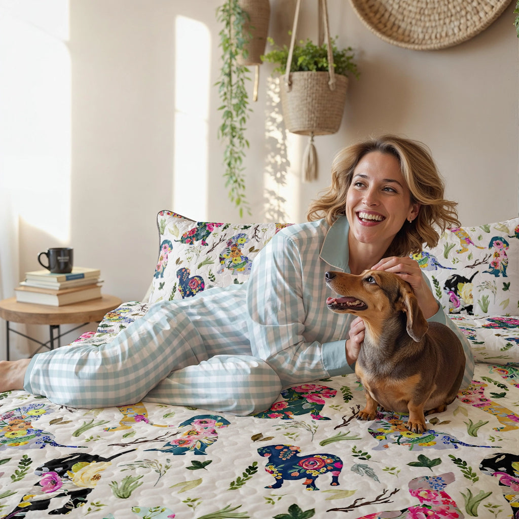 Dachshine Quilt 3-Piece Set Floral Pup Parade