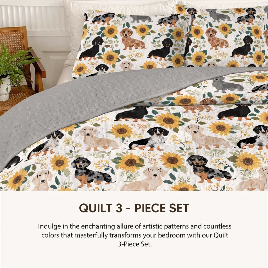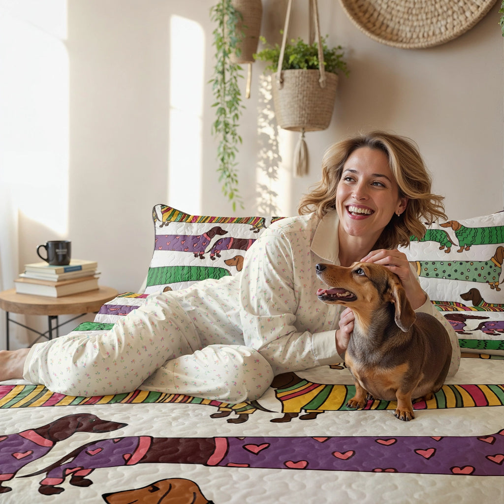 Dachshine Quilt 3-Piece Set Long Dachshund