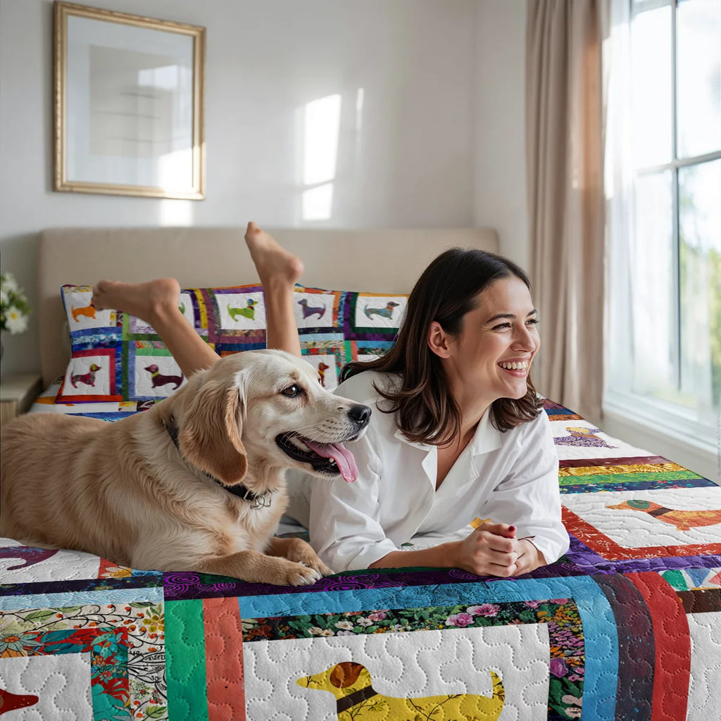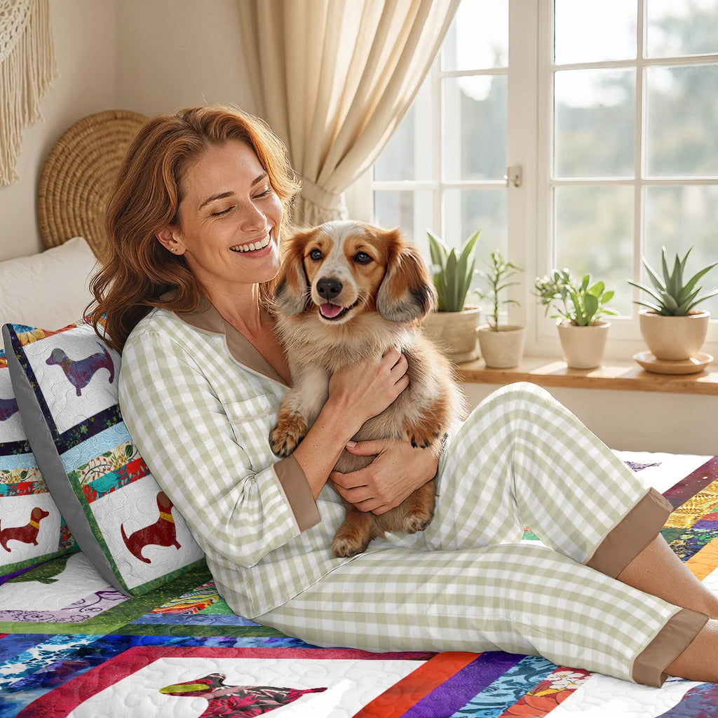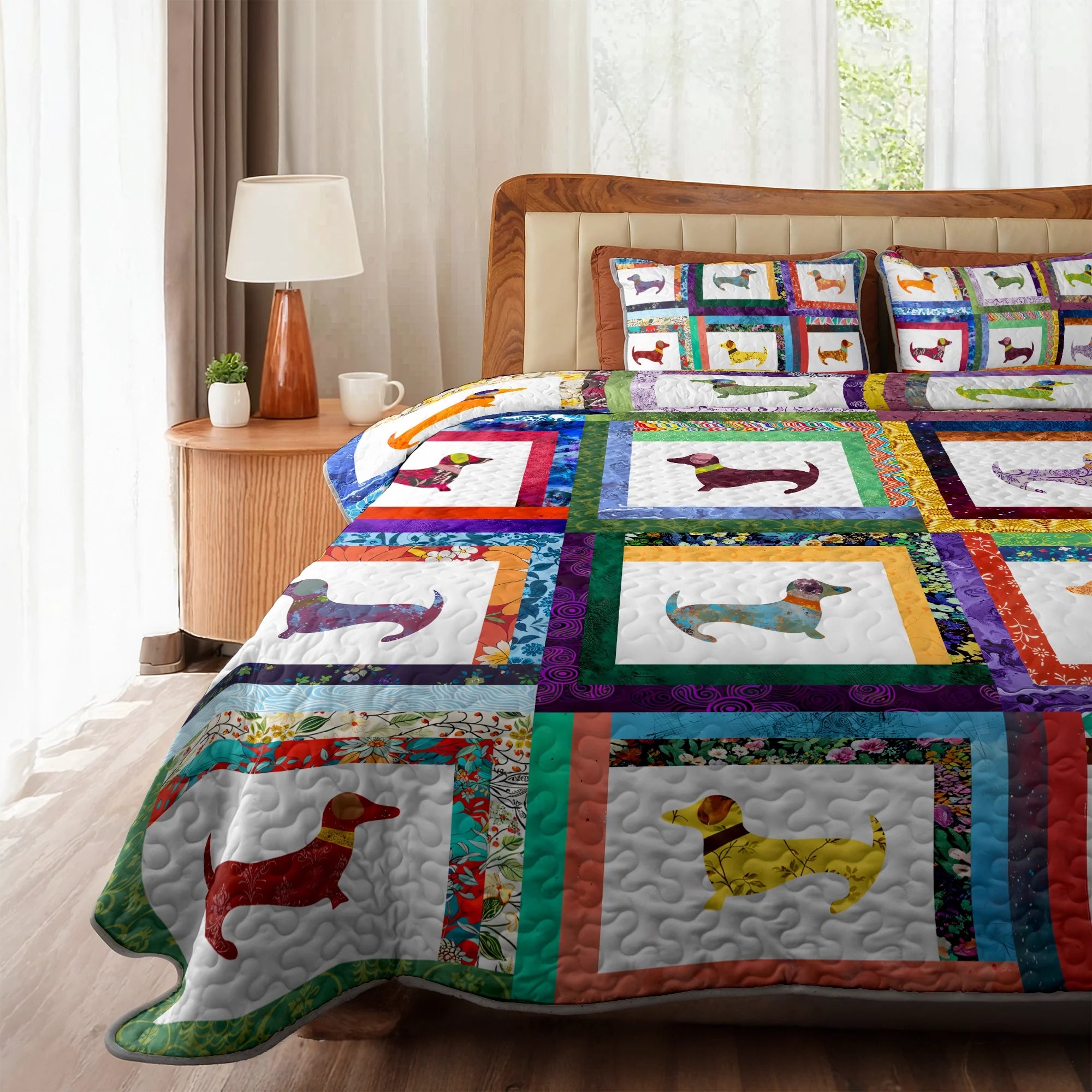 Dachshine Quilt 3-Piece Set Patchwork Pup Parade