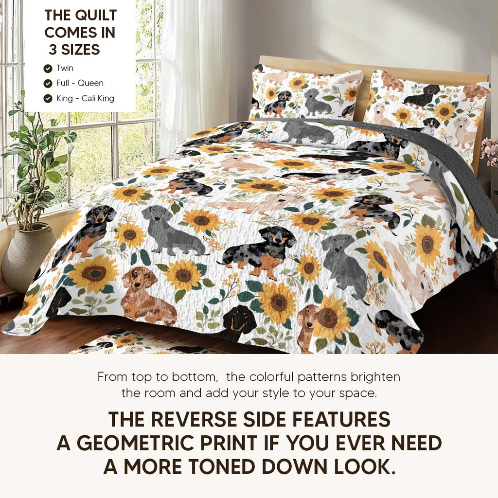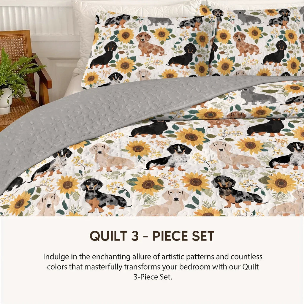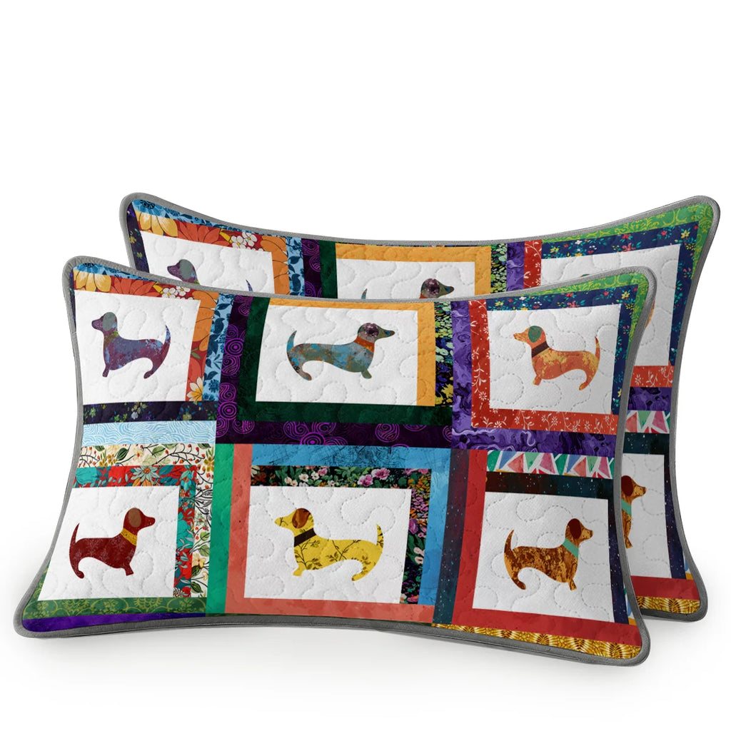 Dachshine Quilt 3-Piece Set Patchwork Pup Parade