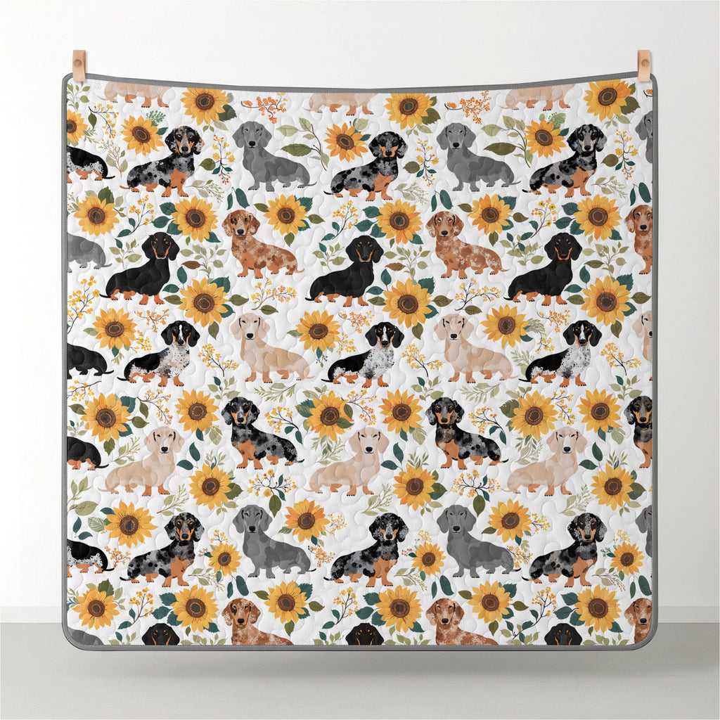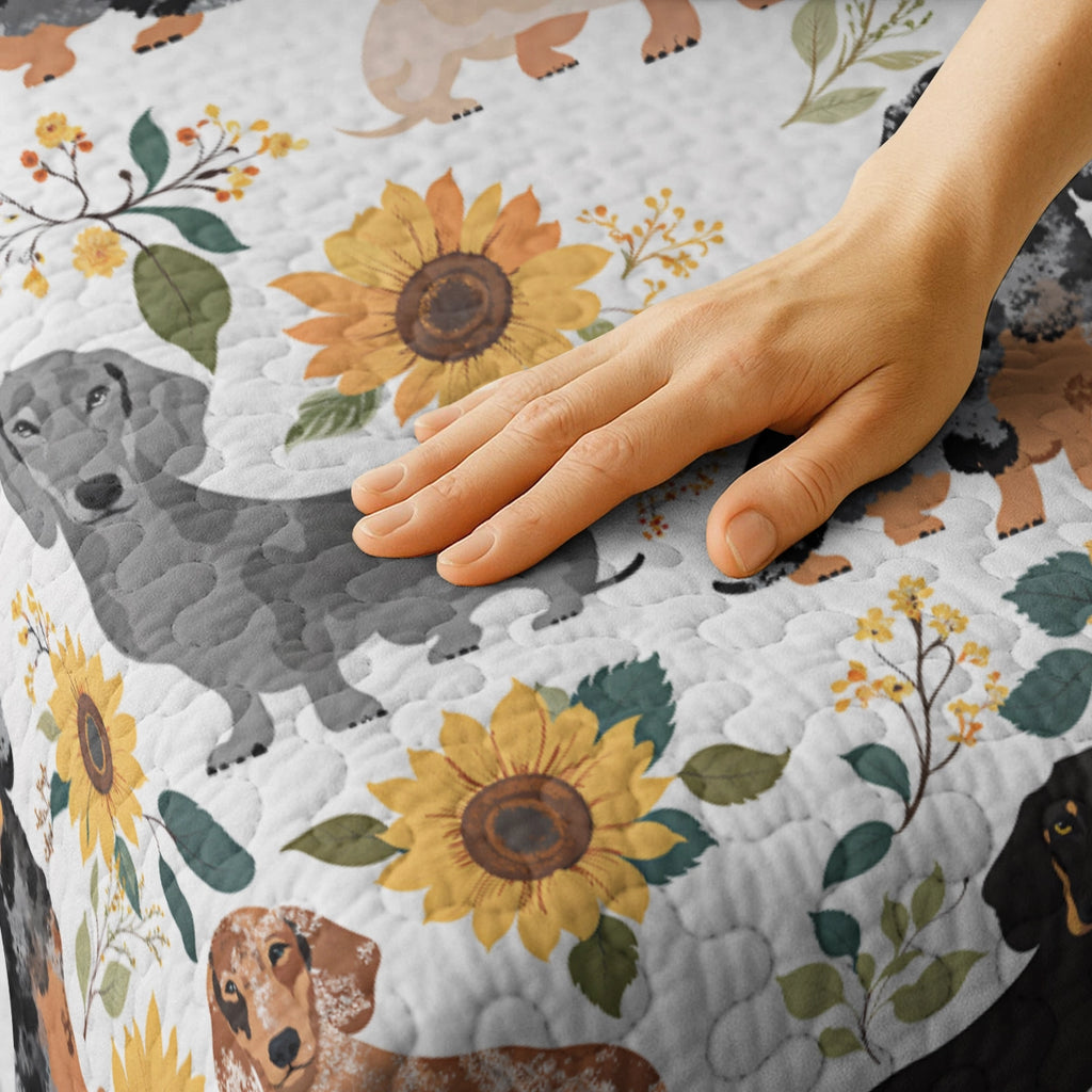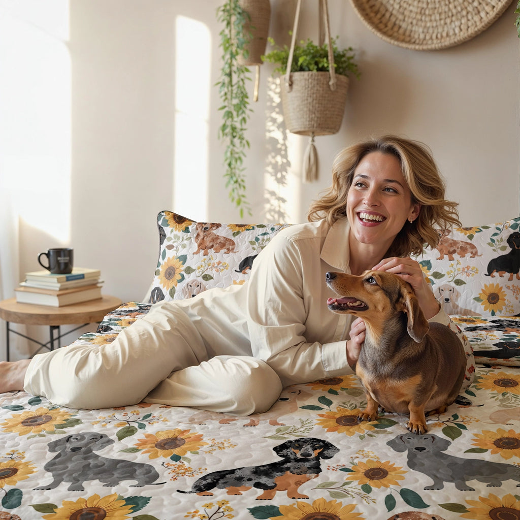 Dachshine Quilt 3-Piece Set Sunflower Sausage Dogs