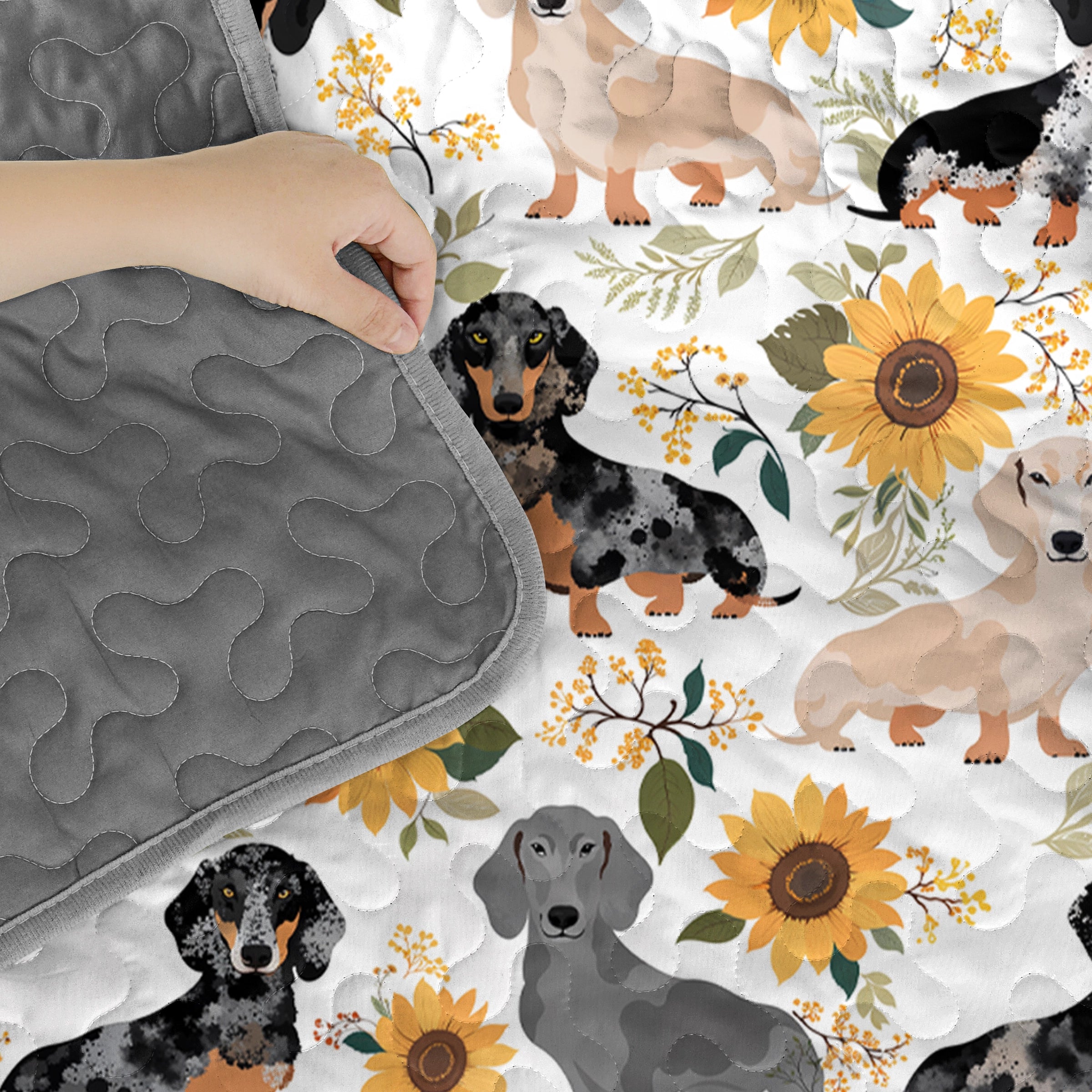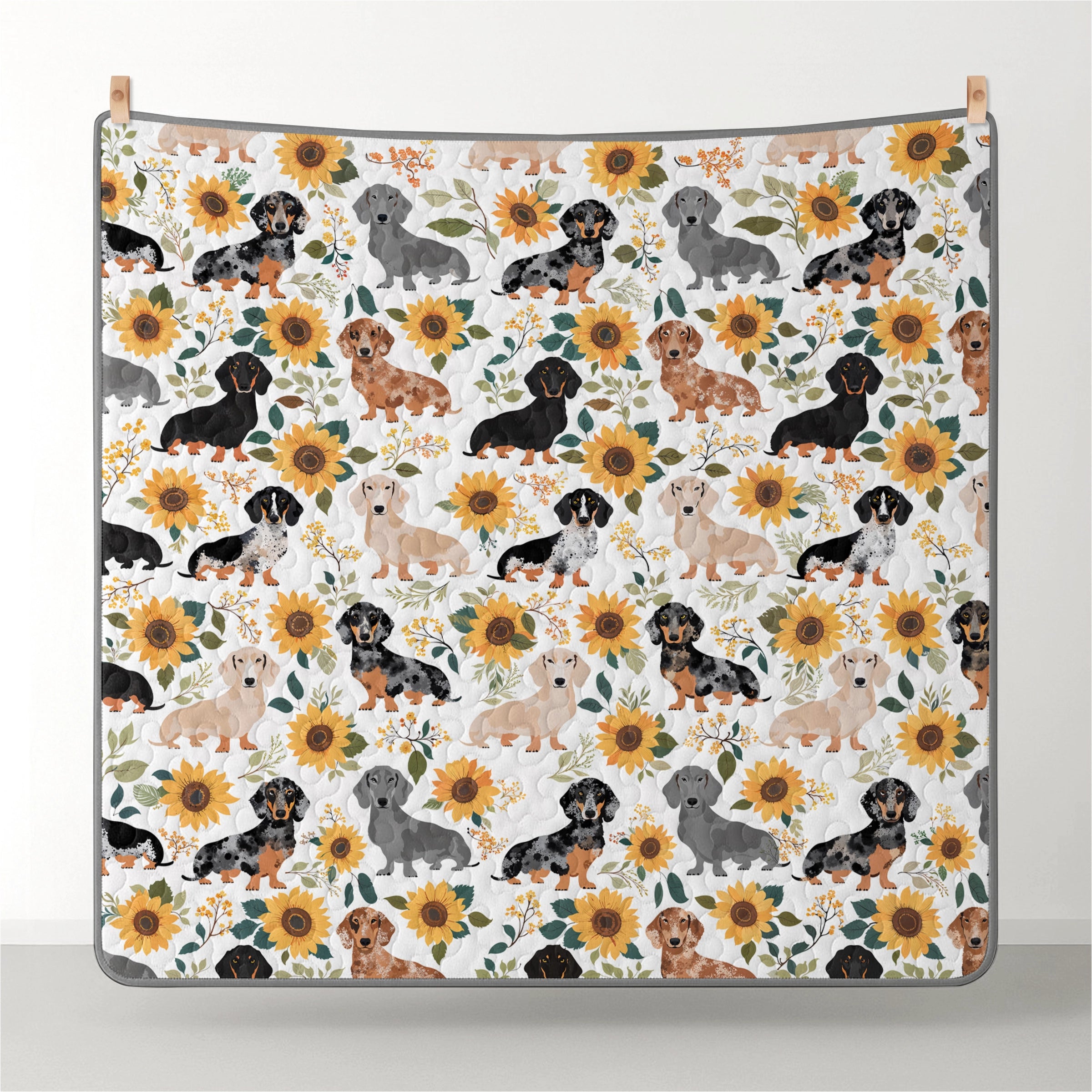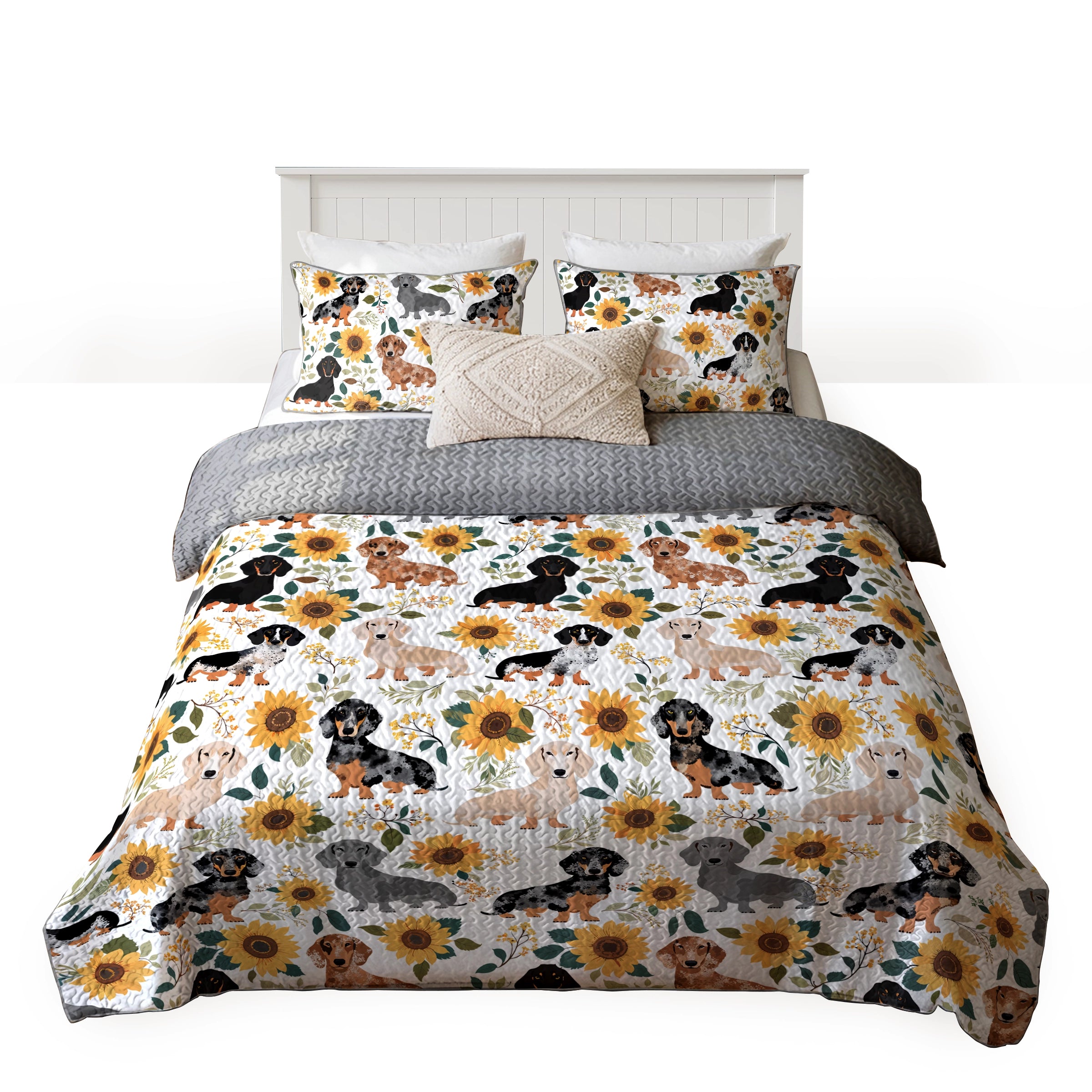 Dachshine Quilt 3-Piece Set Sunflower Sausage Dogs