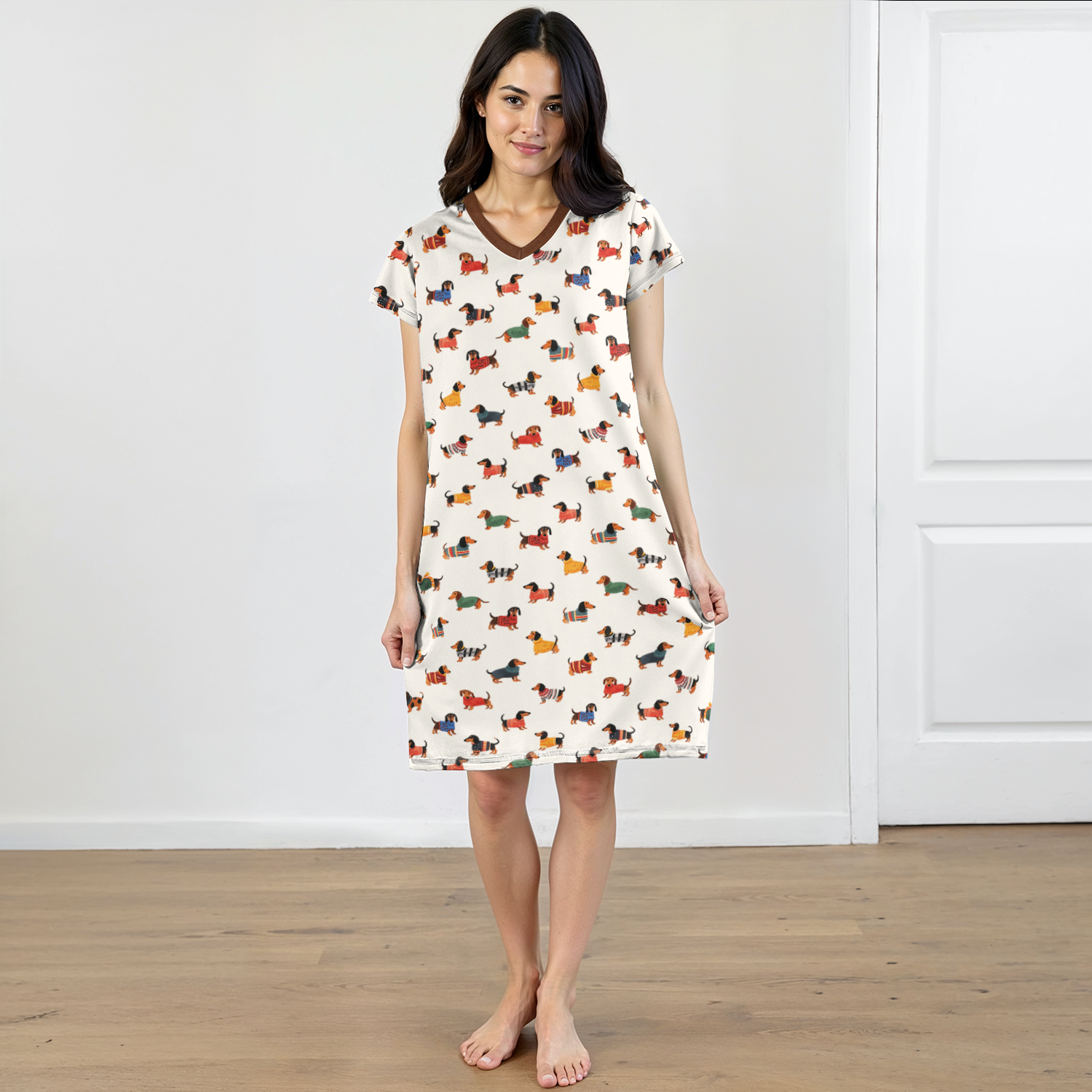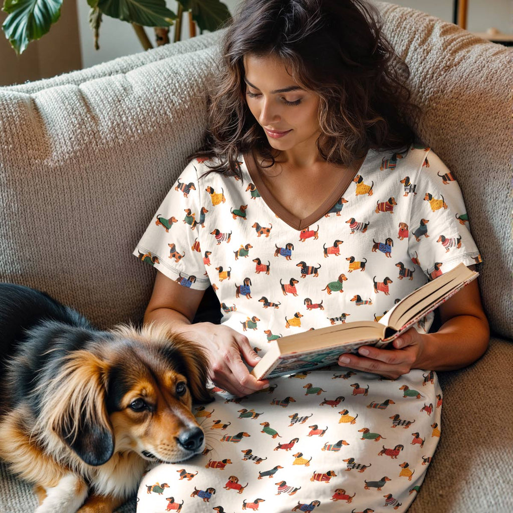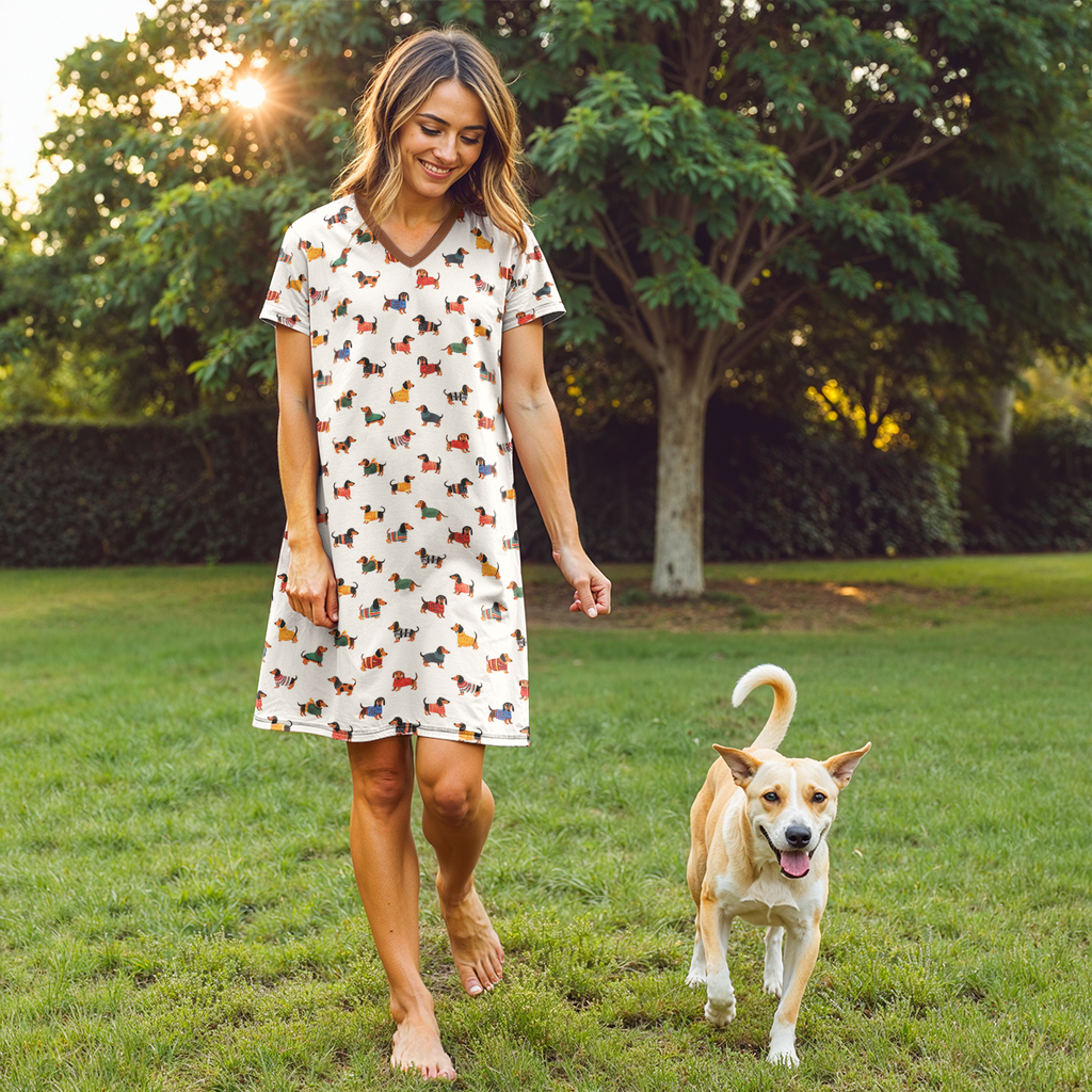 V-Neck Nightshirt – Light, Easy, and Dachshund-Loving