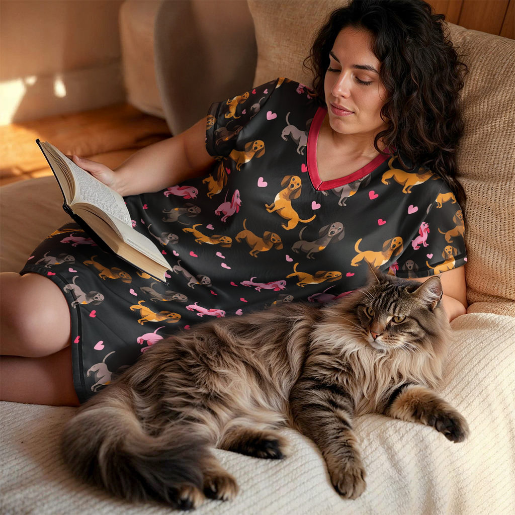 V-Neck Nightshirt – Light, Easy, and Dachshund-Loving