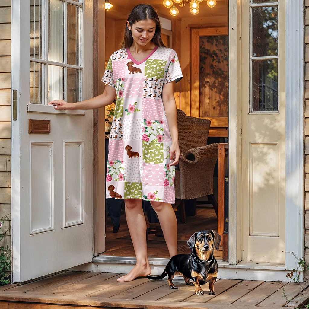 V-Neck Nightshirt – Light, Easy, and Dachshund-Loving