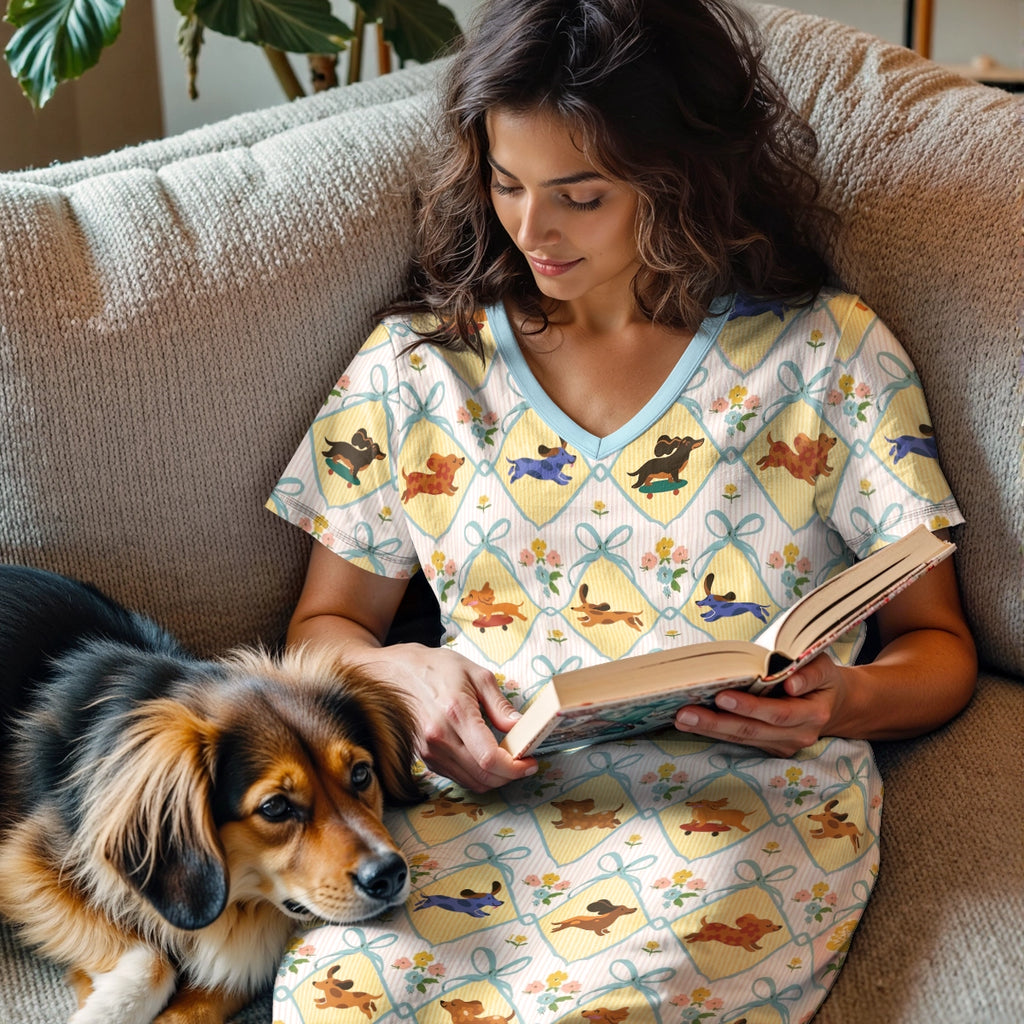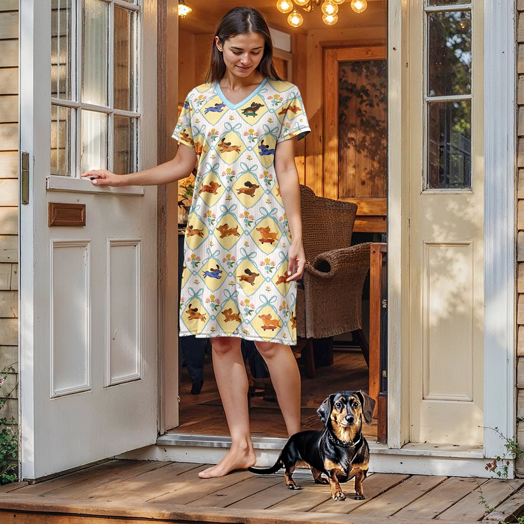 V-Neck Nightshirt โ Light, Easy, and Dachshund-Loving