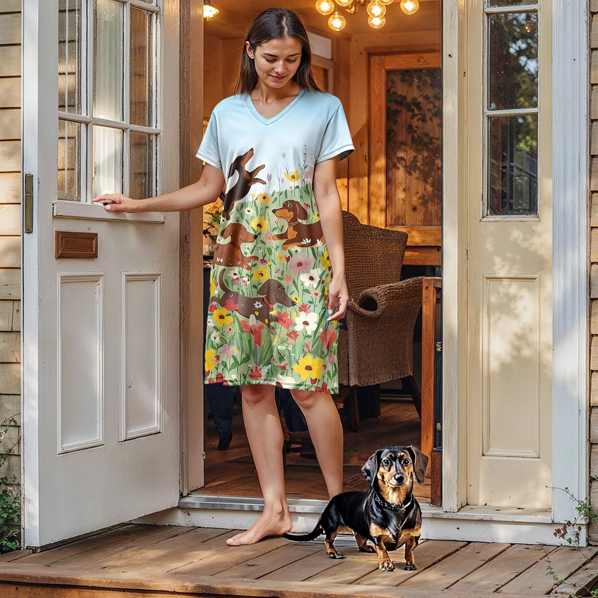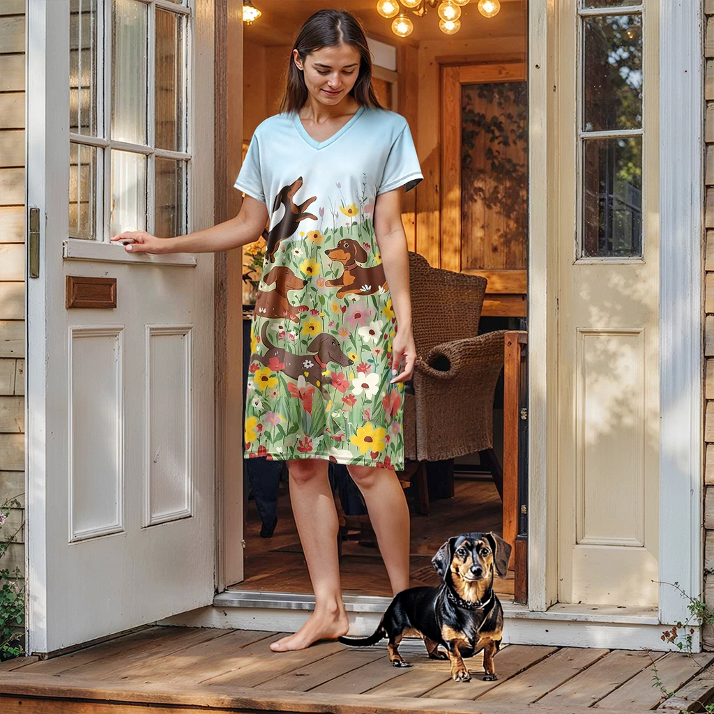 V-Neck Nightshirt โ Light, Easy, and Dachshund-Loving