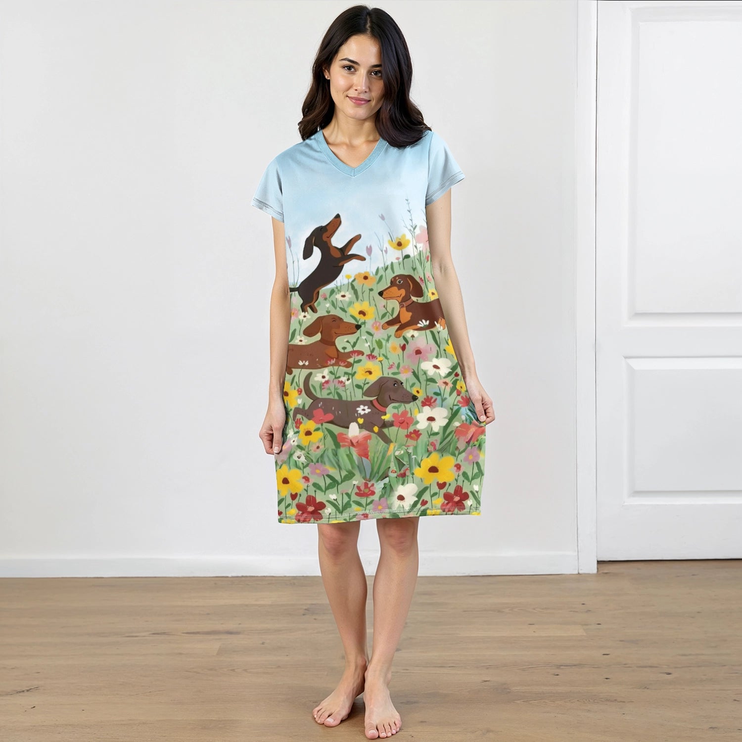 Dachshine Nightshirts V-neck Spring Pup Joy