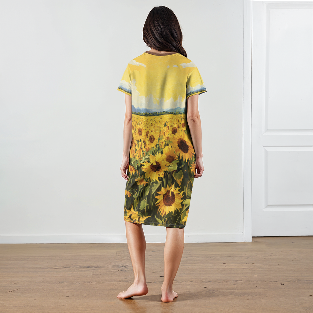 Wrap yourself in comfort with this bright and cheerful sleepwear, where a lovable dachshund sits happily among a dachshund of sunflowers, basking under a warm and dreamy sky not only enhances your style but also brings a sense of joy, warmth, and the carefree spirit of a perfect summer day. Made from soft, lightweight fabric, this is the perfect choice for anyone who loves dogs, nature, and the uplifting beauty of sunflowers.
