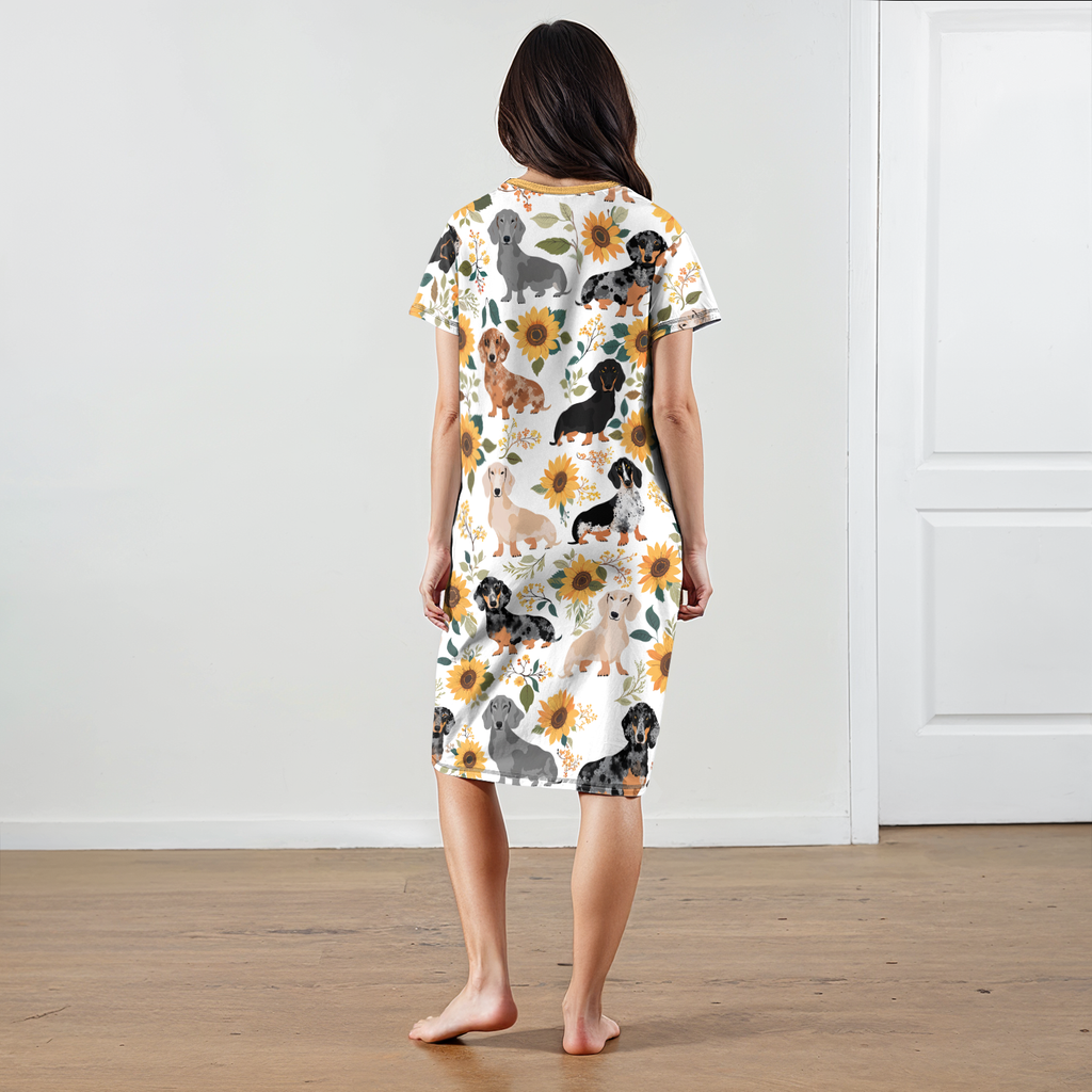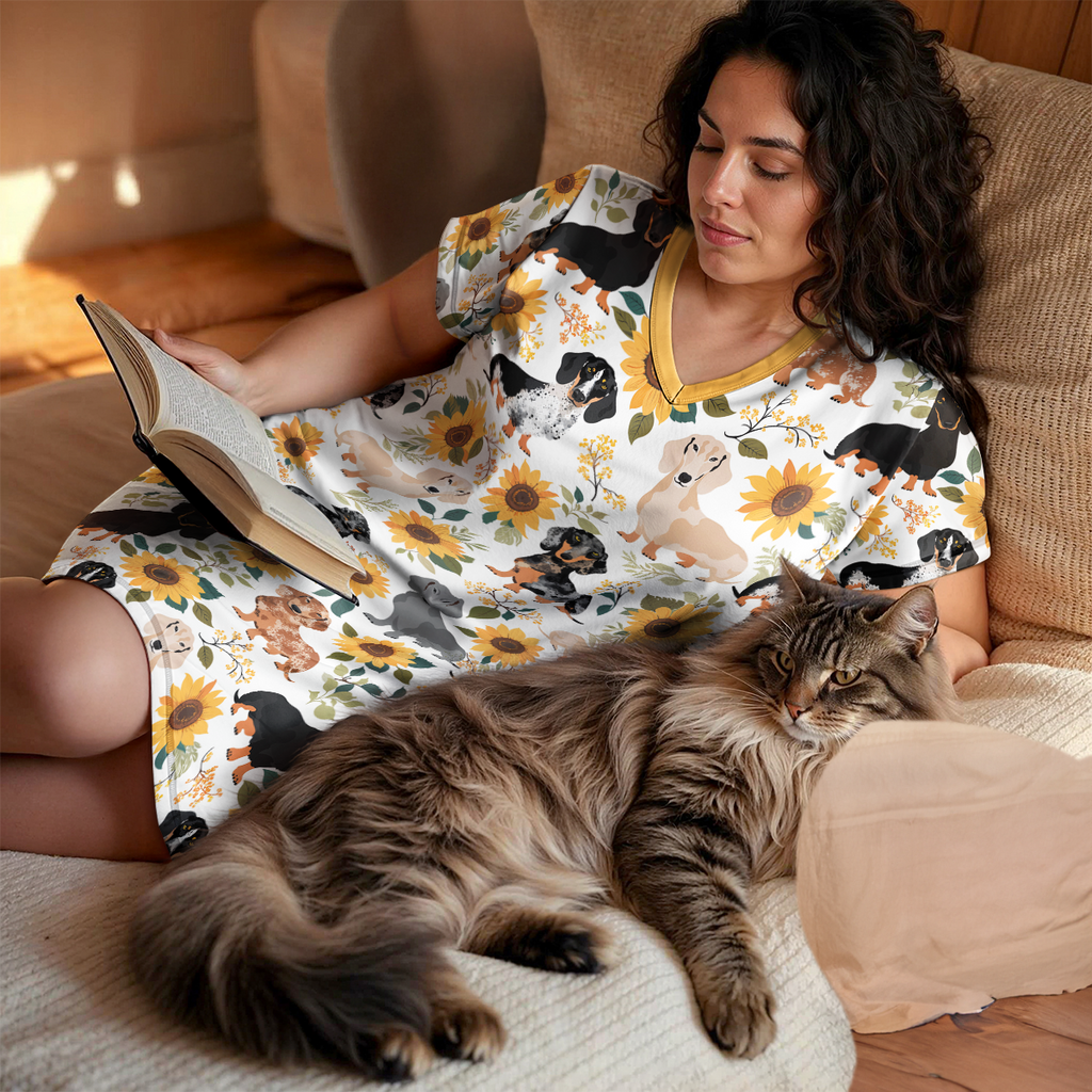 Dachshine Nightshirts V-neck Sunflower Sausage Dogs
