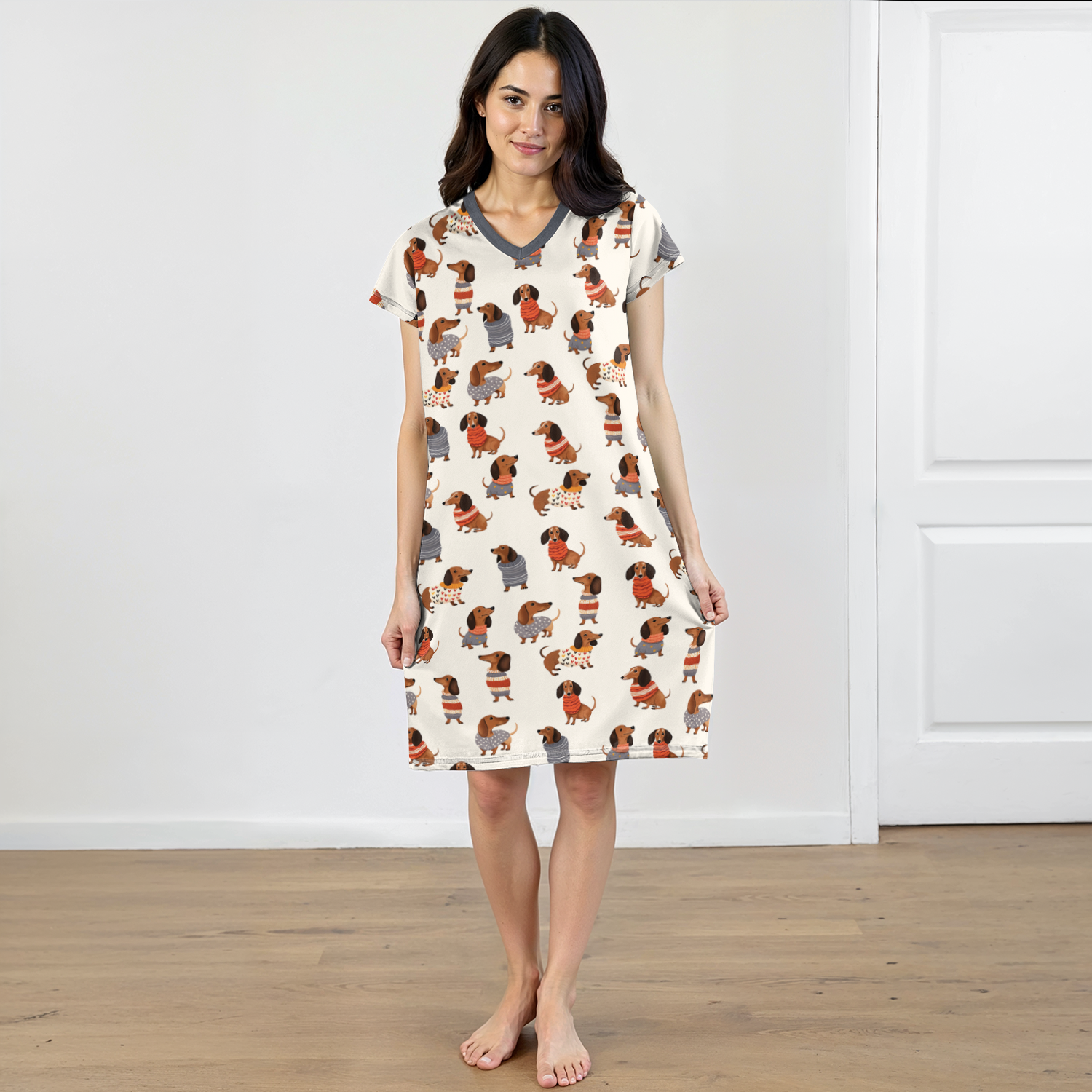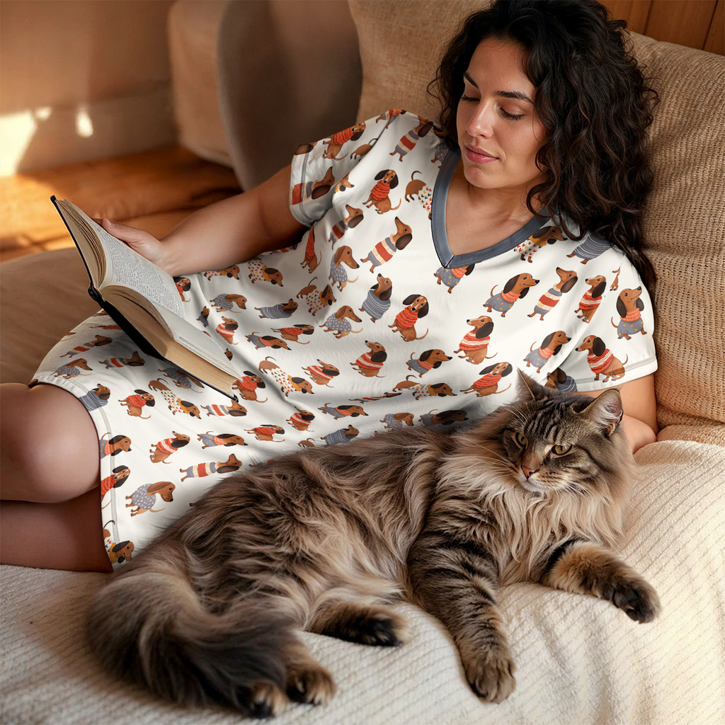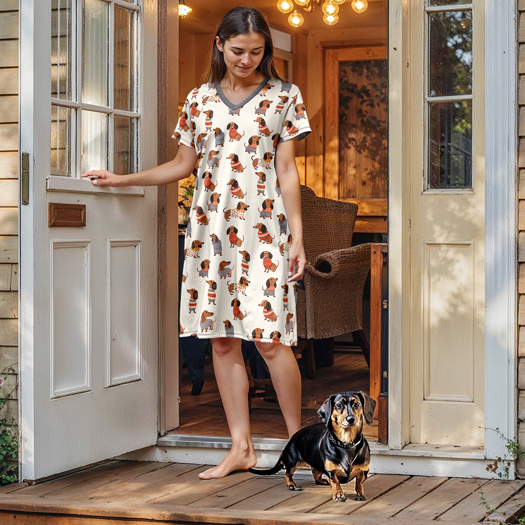 V-Neck Nightshirt โ Light, Easy, and Dachshund-Loving