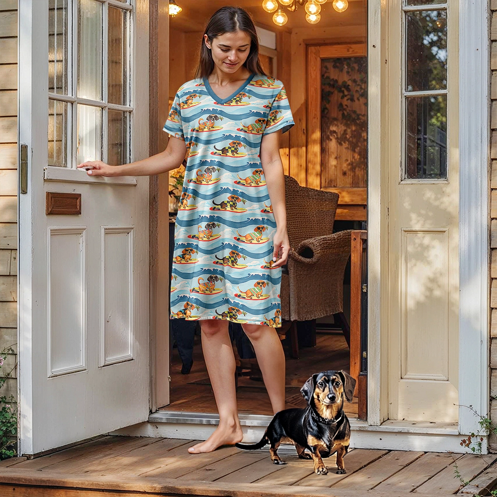 V-Neck Nightshirt โ Light, Easy, and Dachshund-Loving