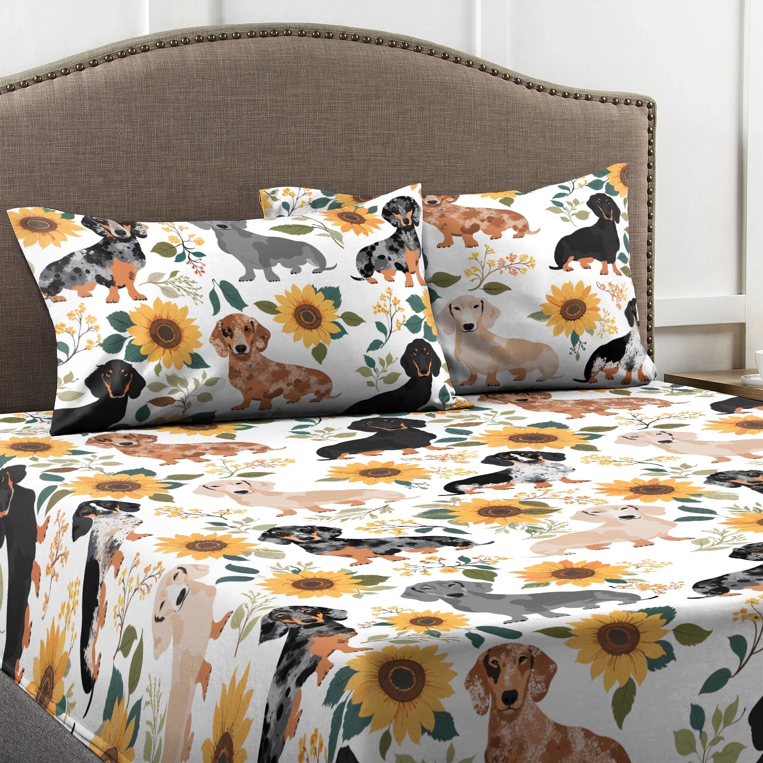 Dachshine Fitted Sheet Sunflower Sausage Dogs
