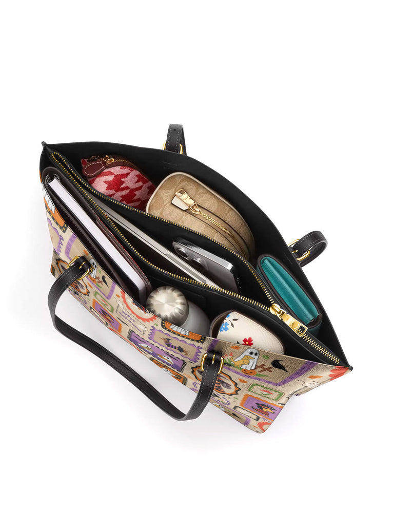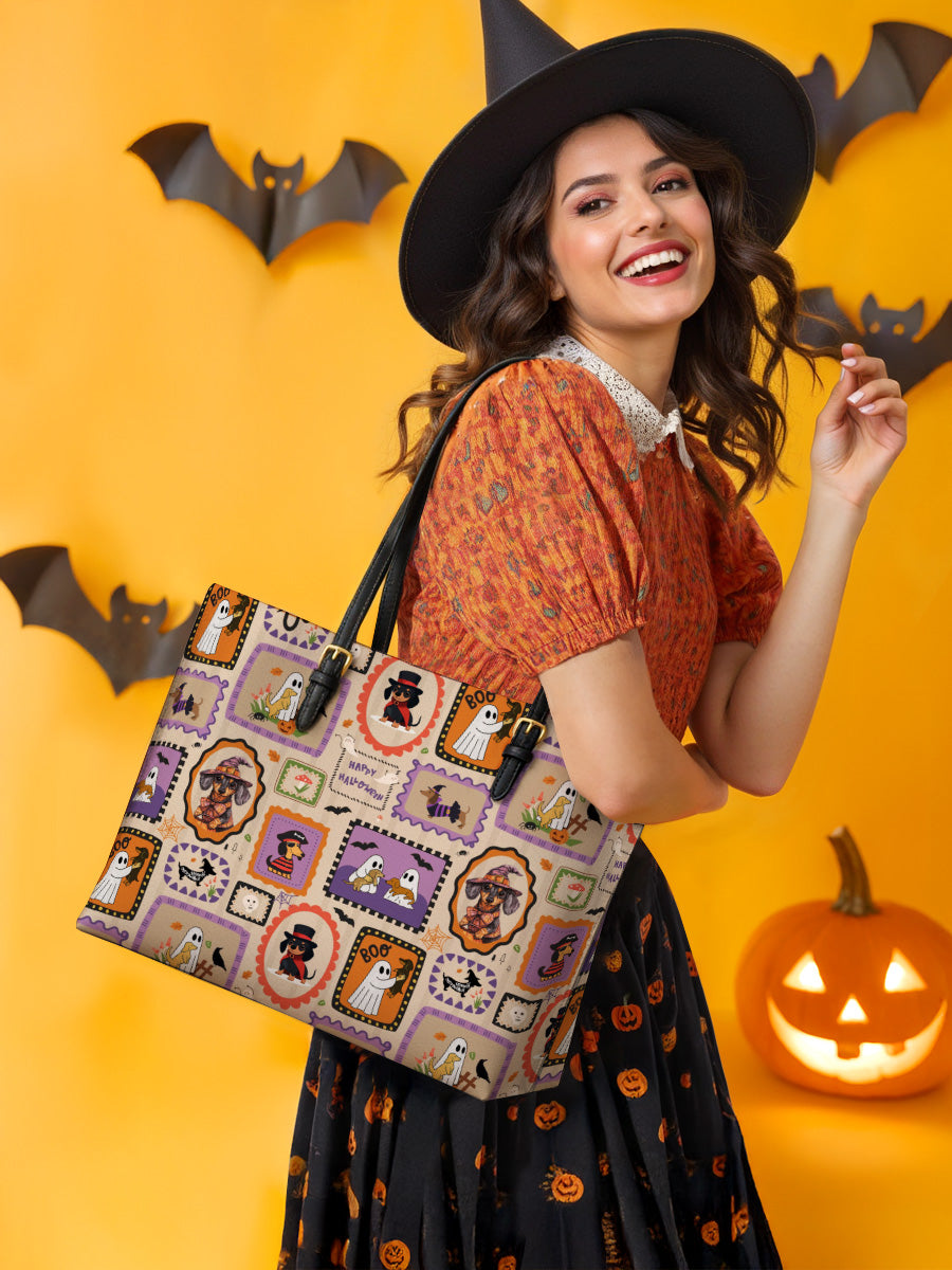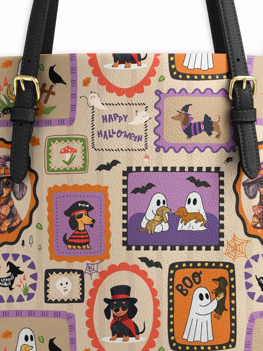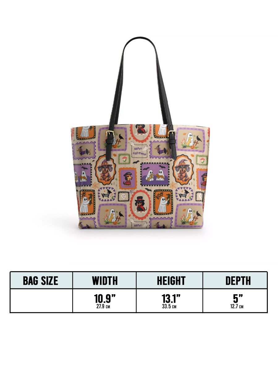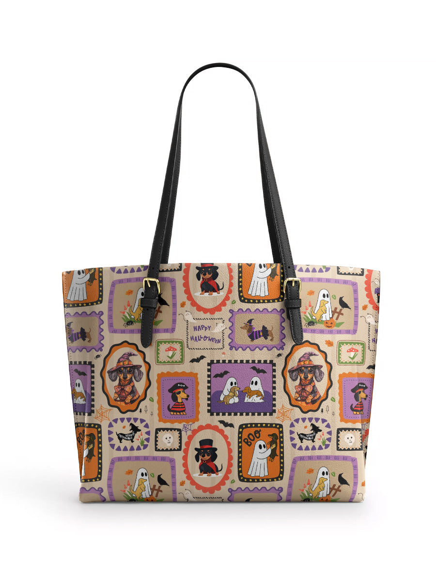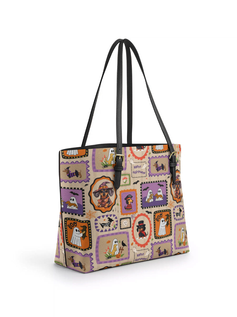 Dachshine Spooky Pup Parade Leather Tote Bag