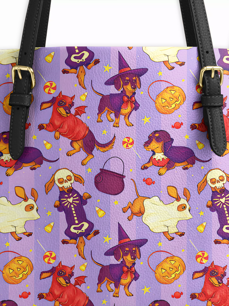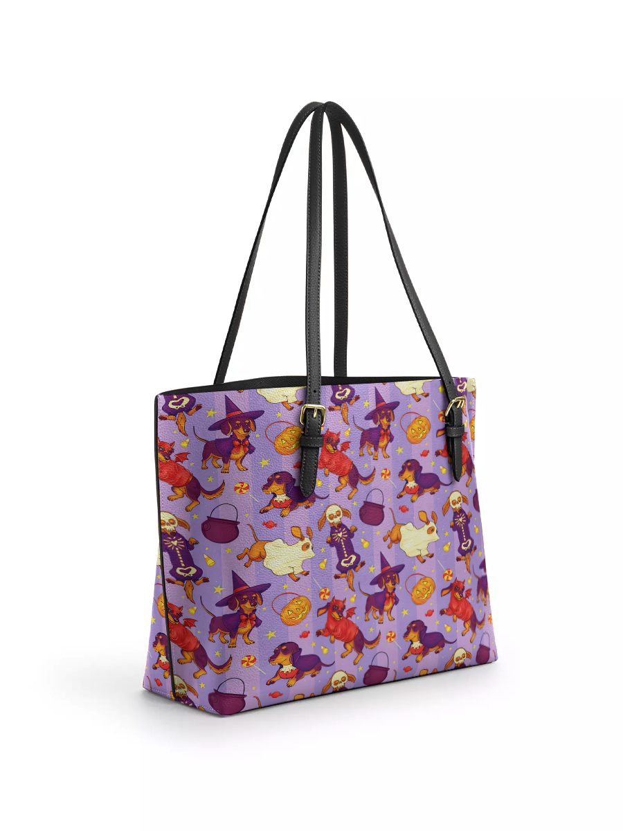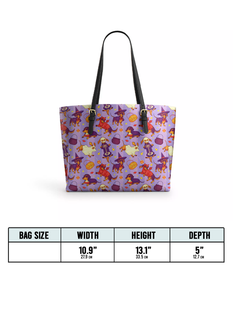 Dachshine Trick Or Tail Leather Tote Bag