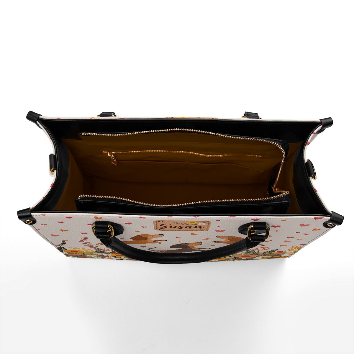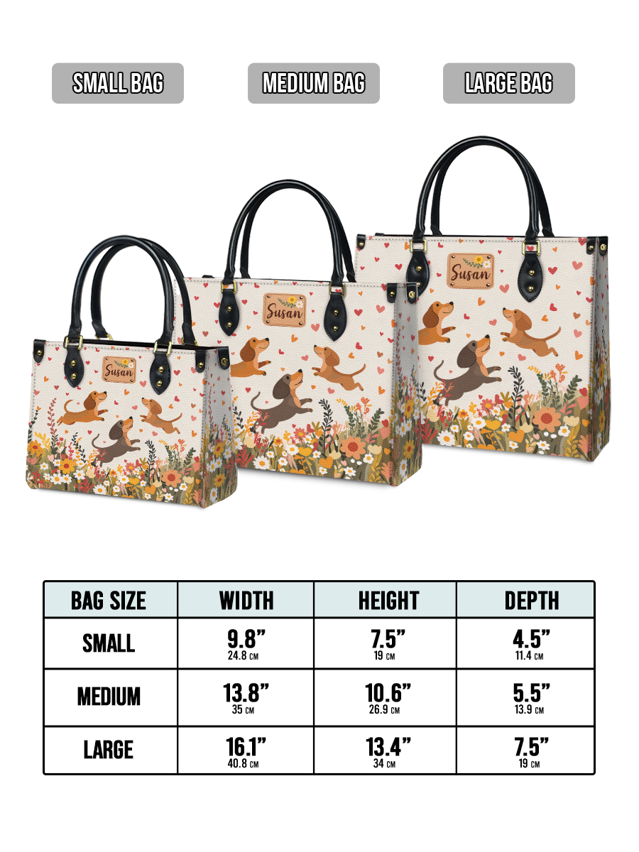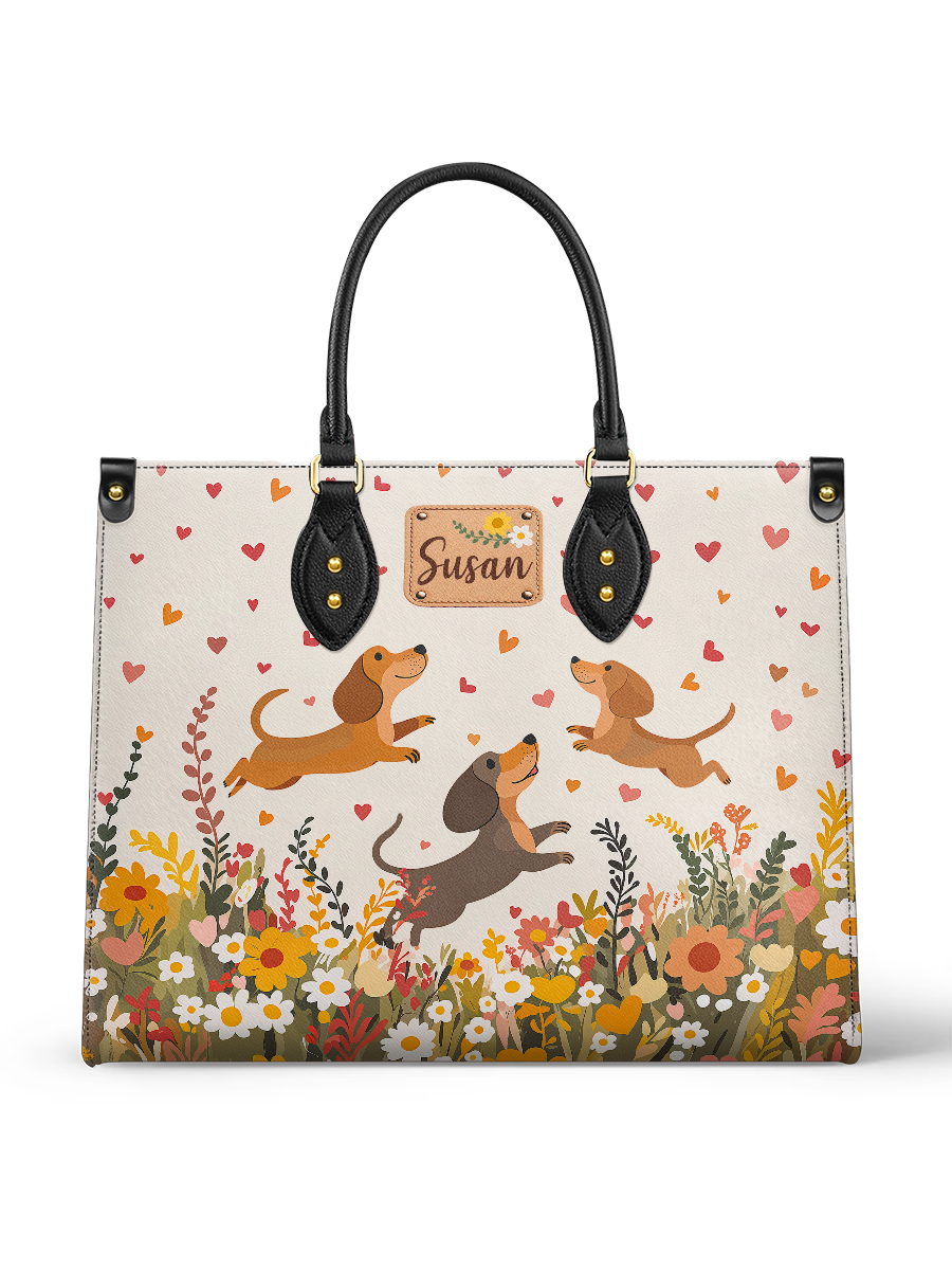 Dachshine Floral Dachshund With Heart Personalized Leather Bag