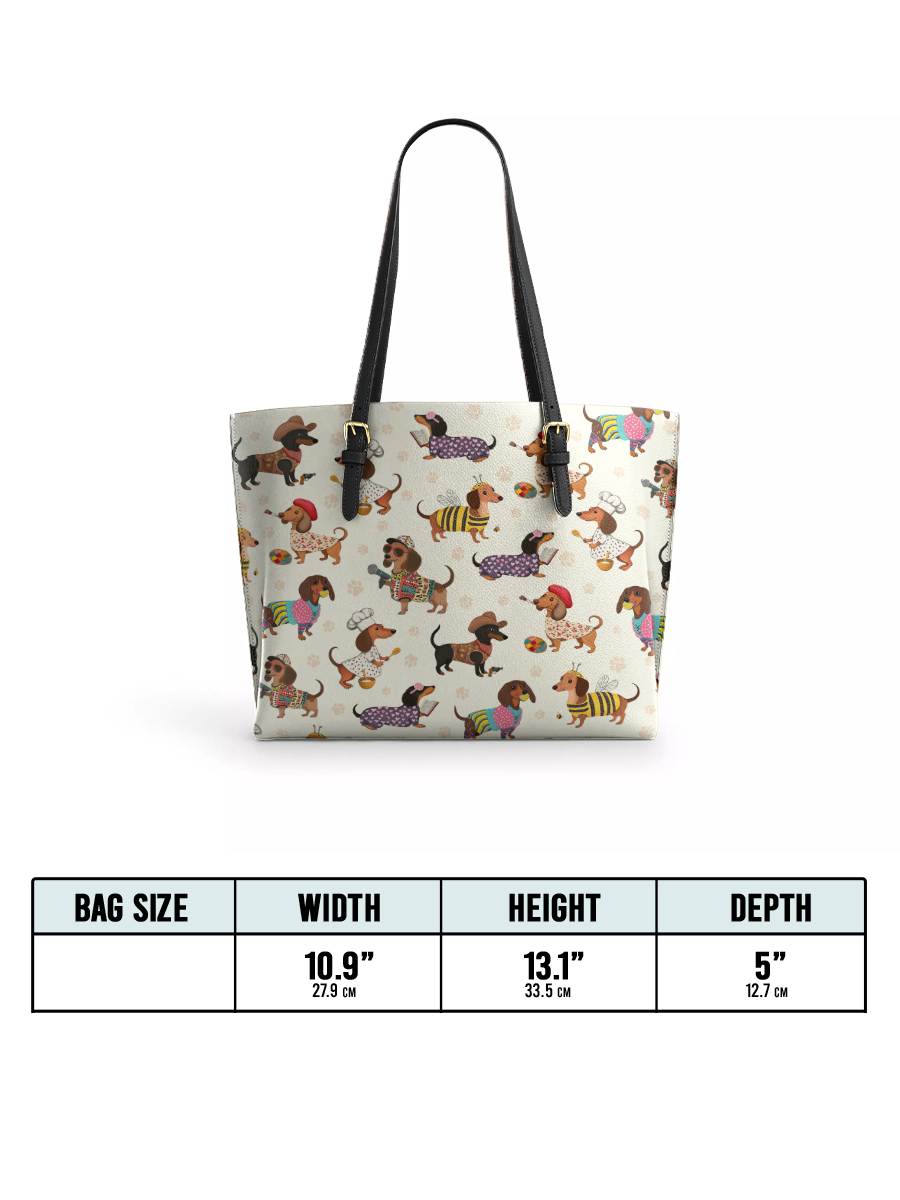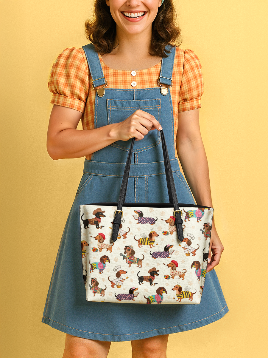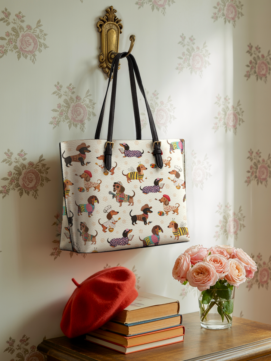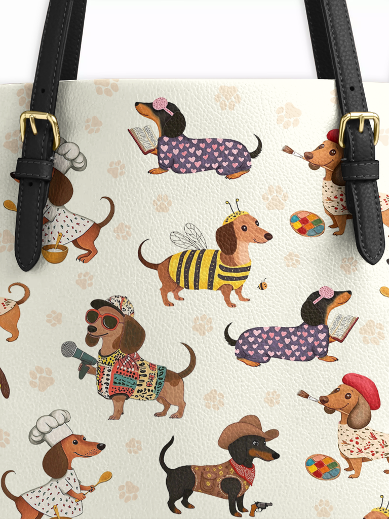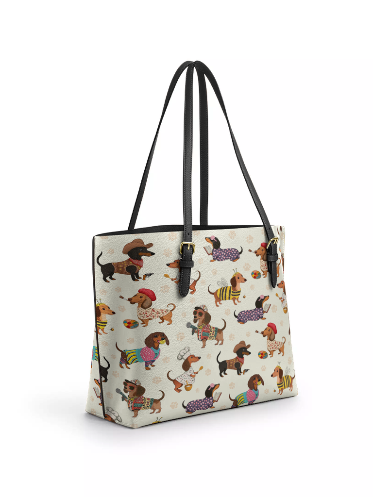 Charming, spirited, and unmistakably yours. The Dachshine Leather Tote Bag blends timeless elegance with playful dachshund artistry, capturing hearts with every glance. Crafted from premium leather and designed for everyday ease, it’s more than a bag - it’s a joyful expression of your unique bond.