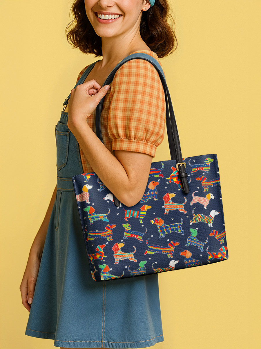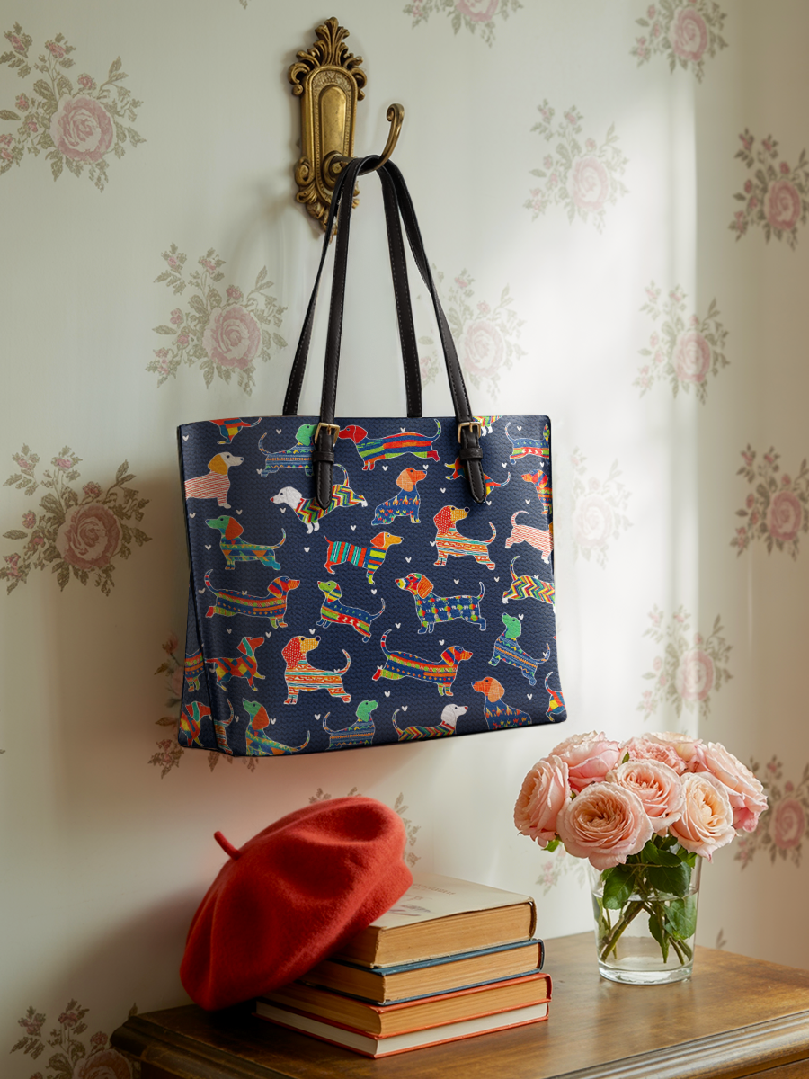 Charming, spirited, and unmistakably yours. The DachyCharm Tote Bag blends timeless elegance with playful dachshund artistry, capturing hearts with every glance. Crafted from premium leather and designed for everyday ease, it’s more than a bag—it’s a joyful expression of your unique bond.