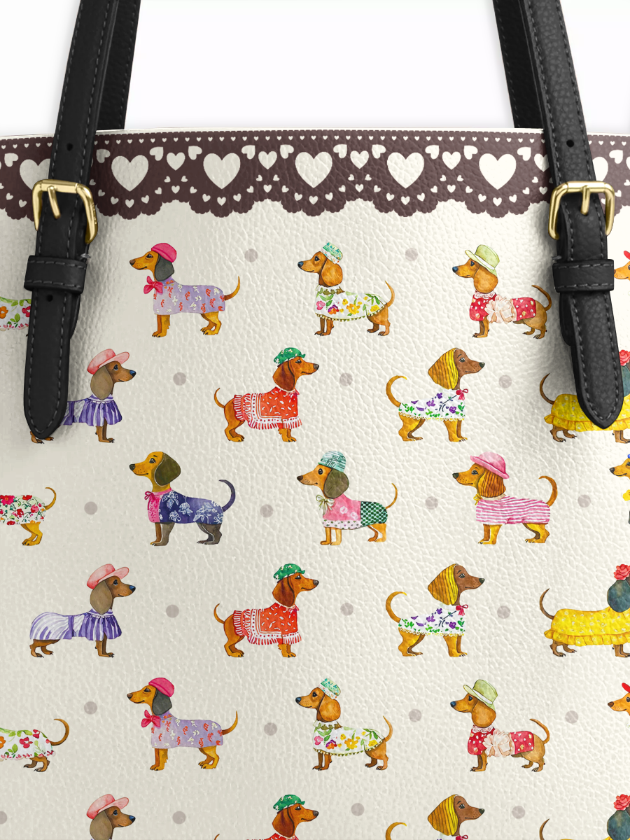 Charming, spirited, and unmistakably yours. The DachyCharm Tote Bag blends timeless elegance with playful dachshund artistry, capturing hearts with every glance. Crafted from premium leather and designed for everyday ease, it’s more than a bag—it’s a joyful expression of your unique bond.