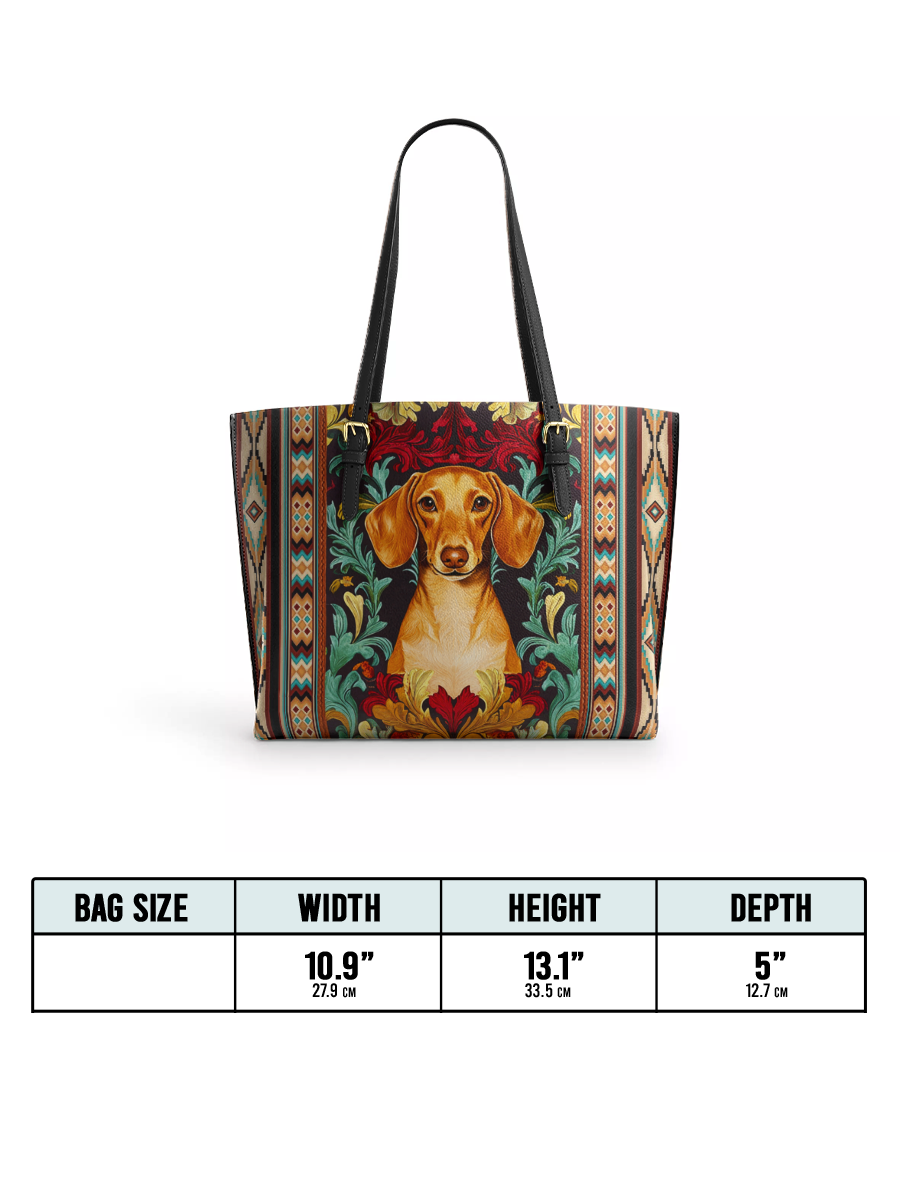 Charming, spirited, and unmistakably yours. The DachyCharm Tote Bag blends timeless elegance with playful dachshund artistry, capturing hearts with every glance. Crafted from premium leather and designed for everyday ease, it’s more than a bag—it’s a joyful expression of your unique bond.