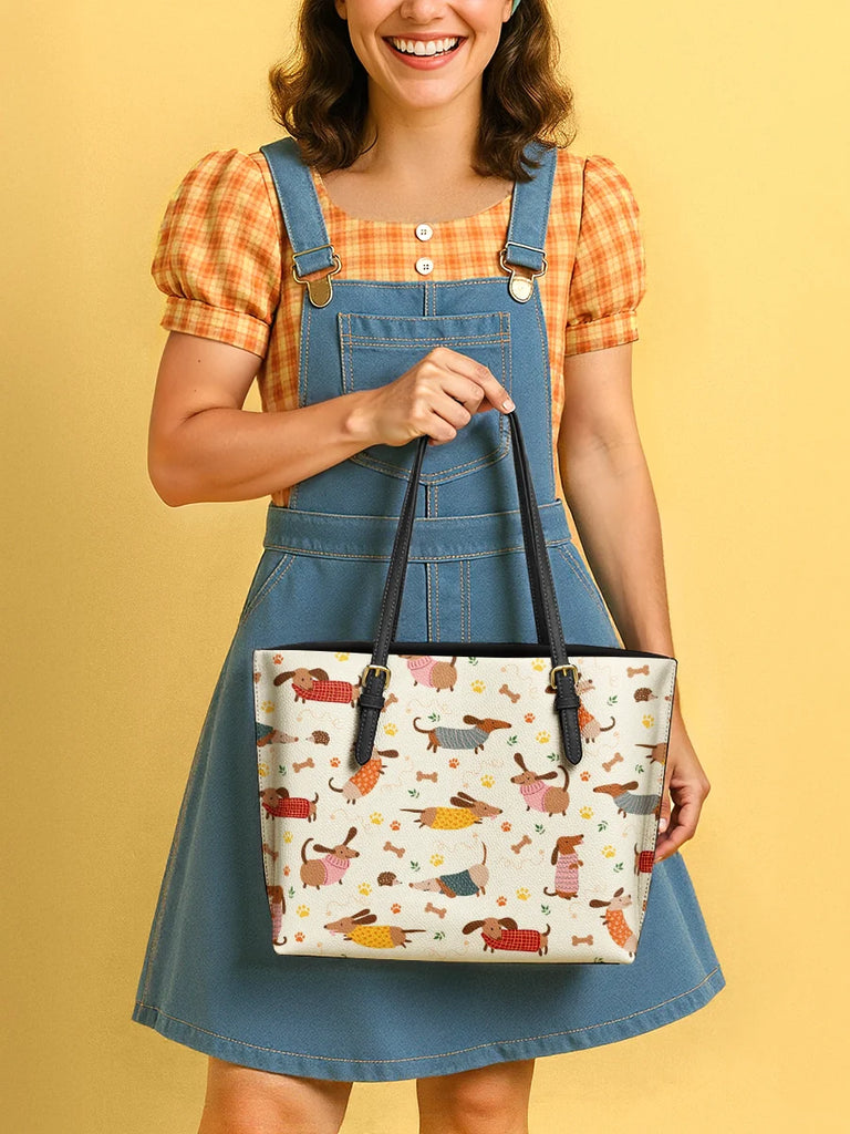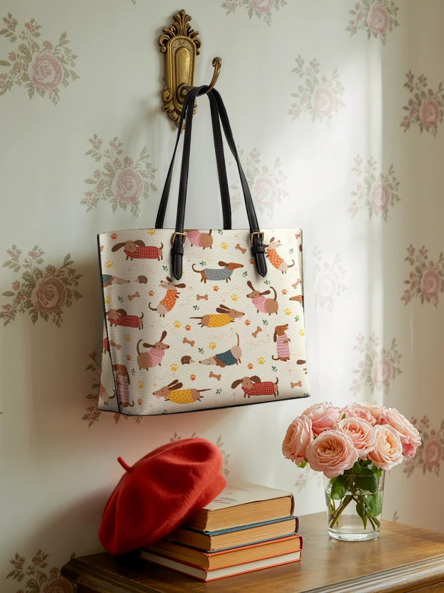Charming, spirited, and unmistakably yours. The Dachshine Leather Tote Bag blends timeless elegance with playful dachshund artistry, capturing hearts with every glance. Crafted from premium leather and designed for everyday ease, it’s more than a bag - it’s a joyful expression of your unique bond.