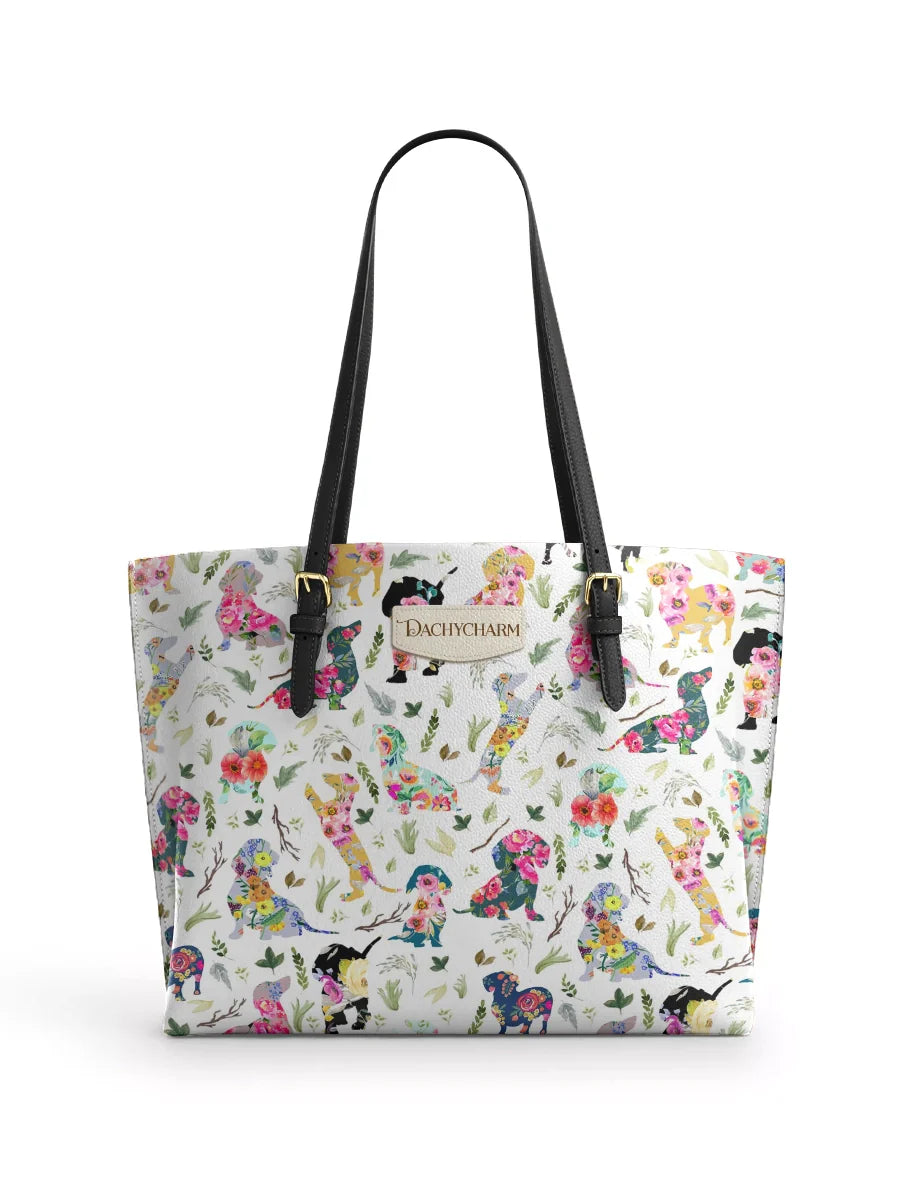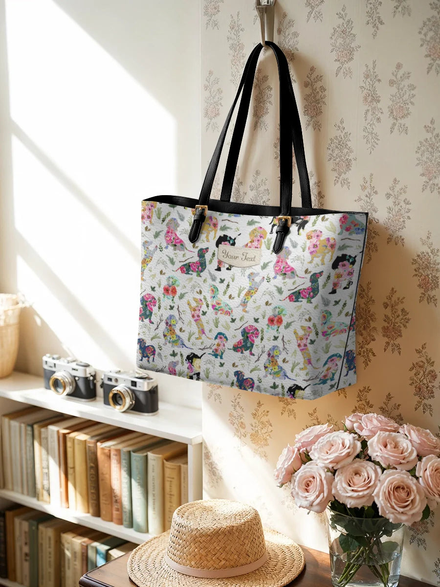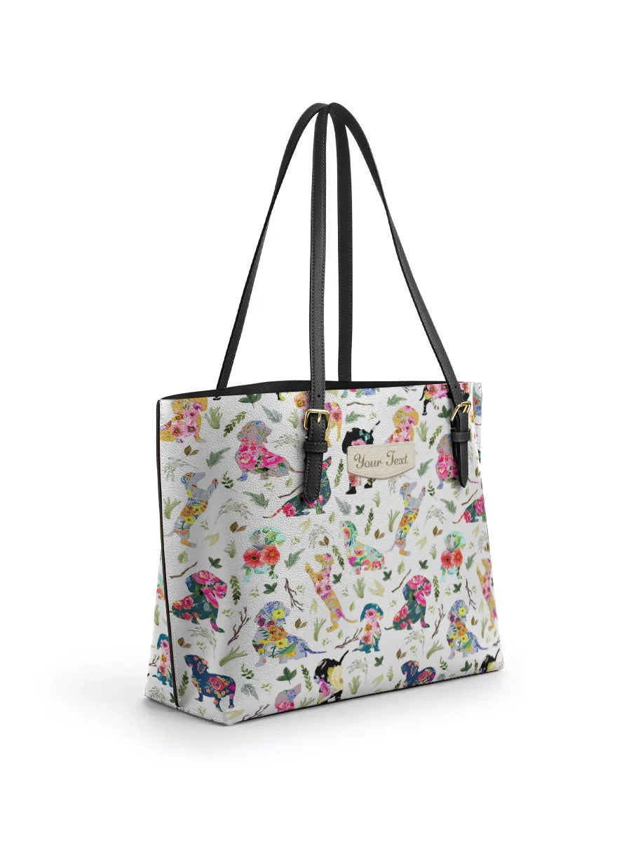Dachshine Floral Parade Personalized Leather Tote Bag