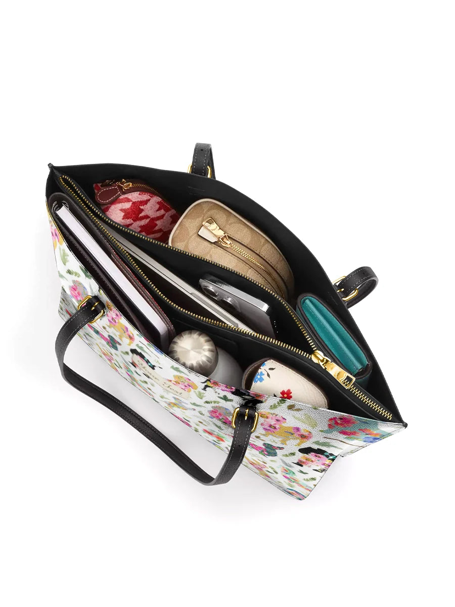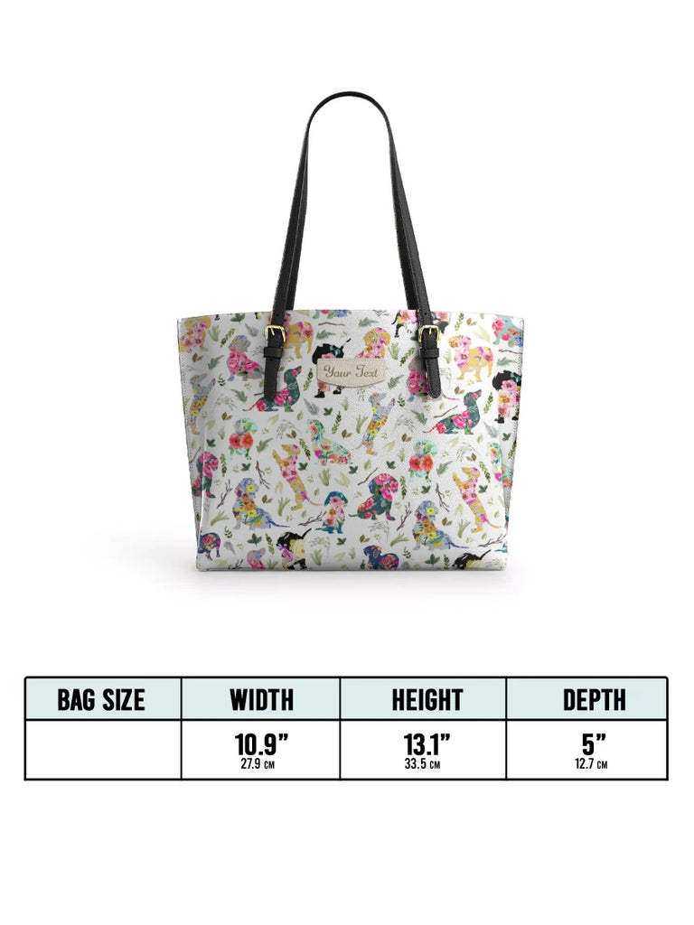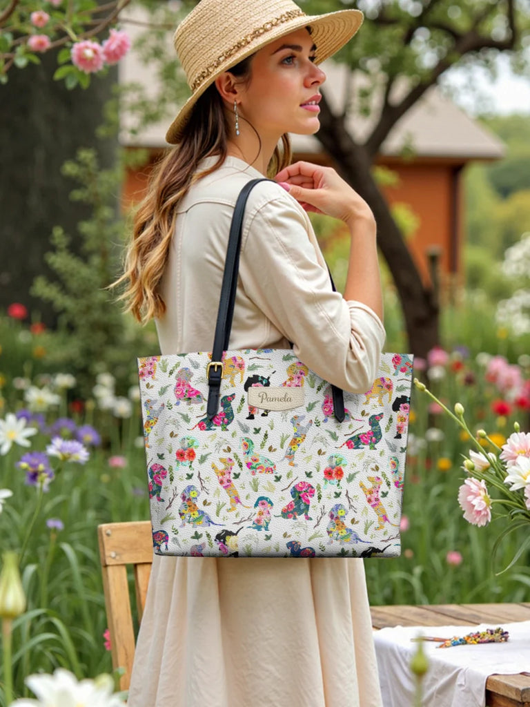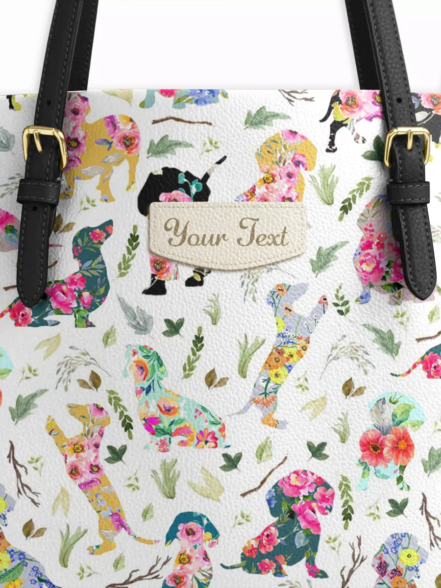 Dachshine Floral Parade Personalized Leather Tote Bag