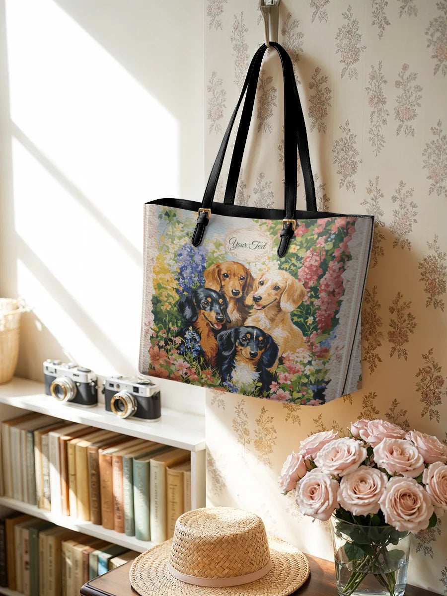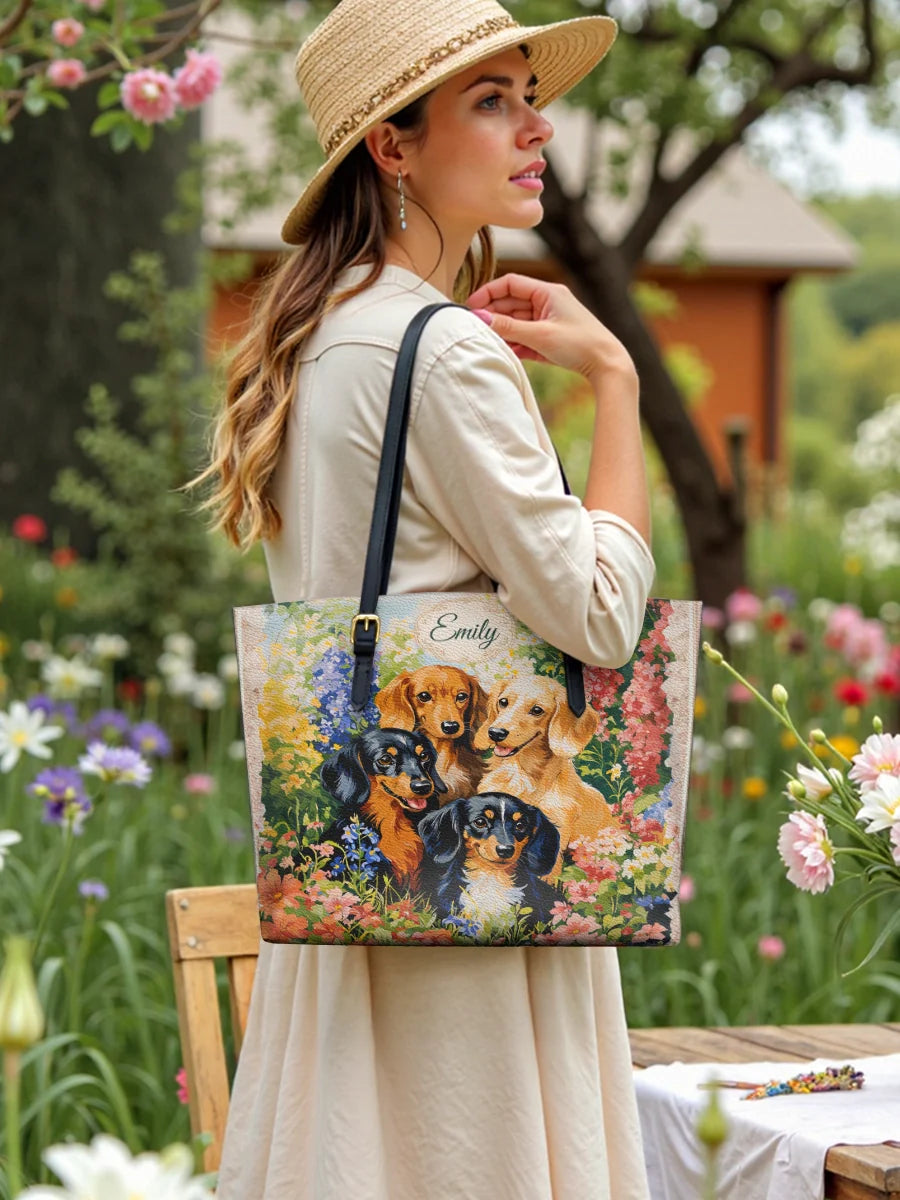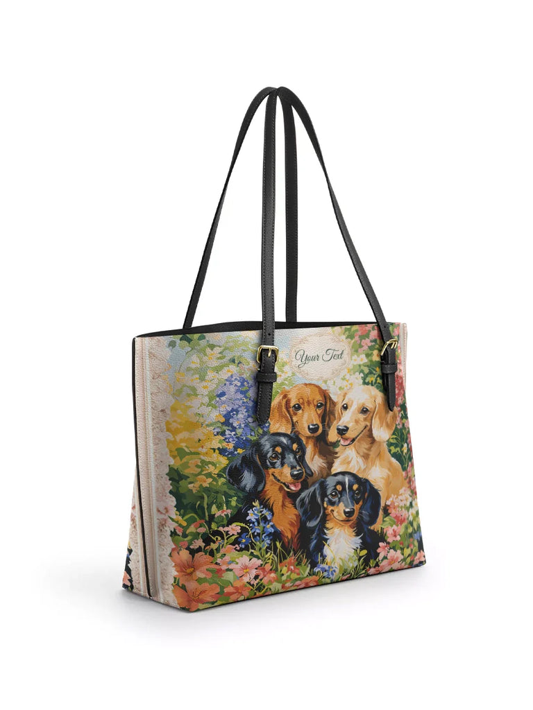 Dachshine Garden Bliss Personalized Leather Tote Bag