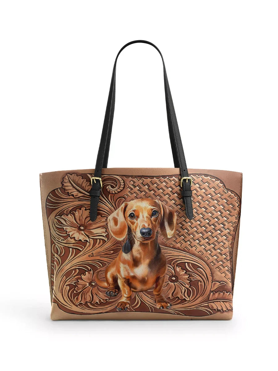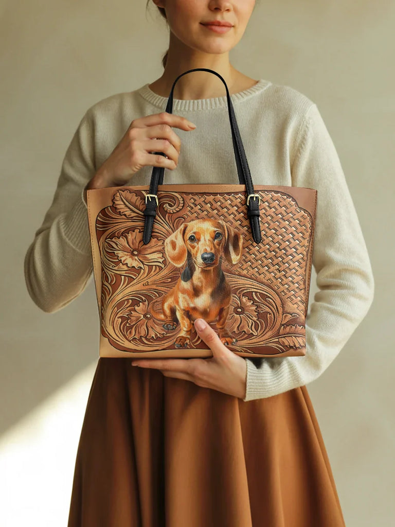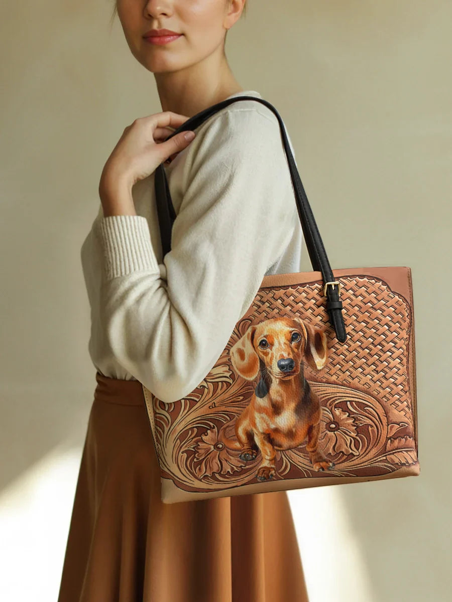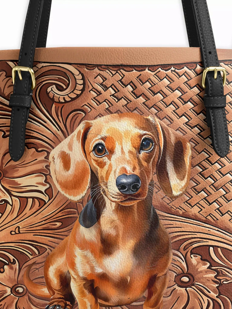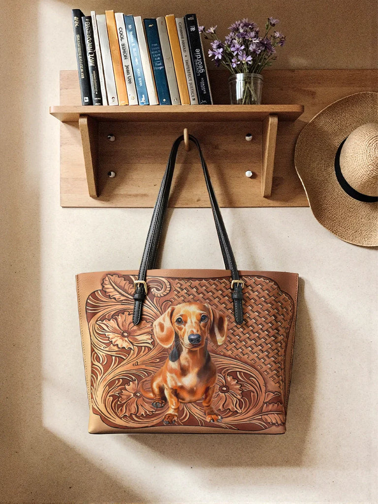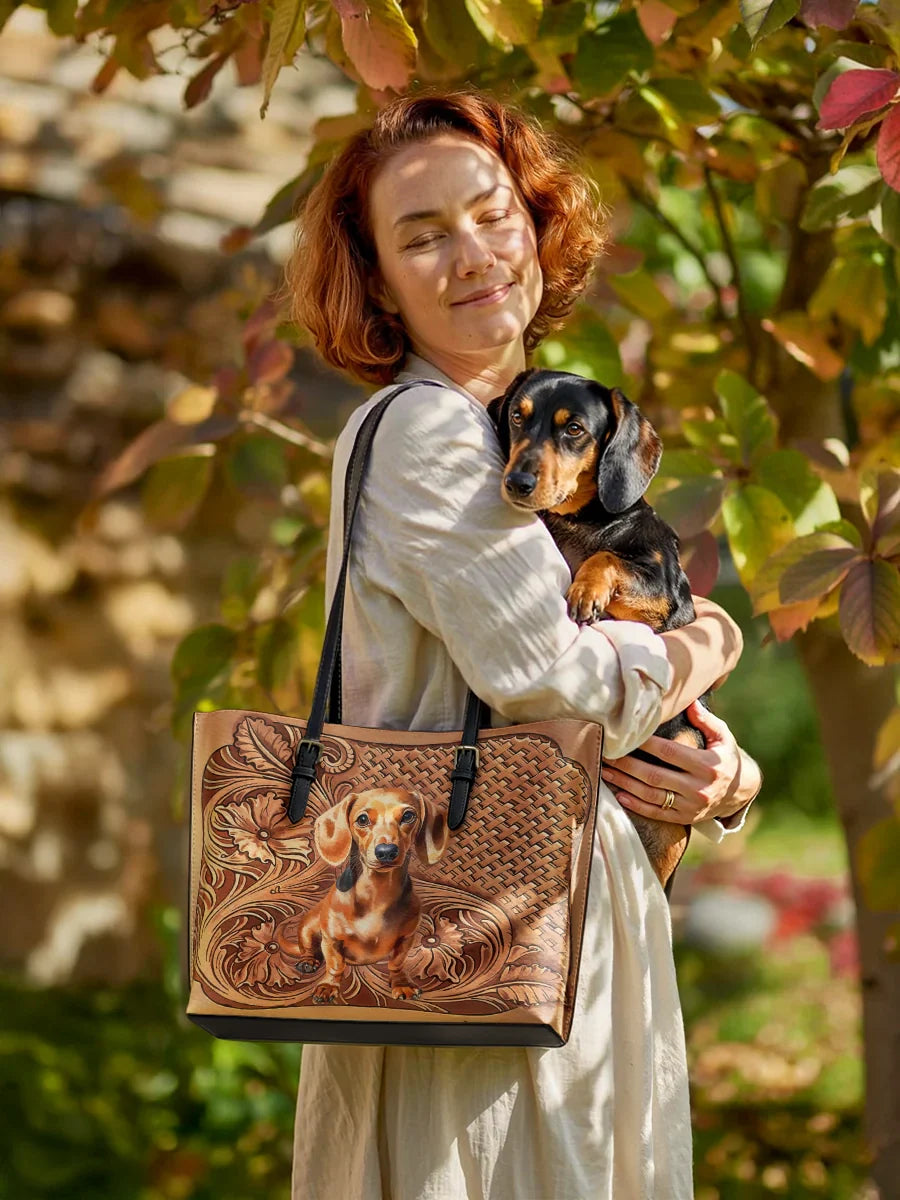 Charming, spirited, and unmistakably yours. The Dachshine Leather Tote Bag blends timeless elegance with playful dachshund artistry, capturing hearts with every glance. Crafted from premium leather and designed for everyday ease, it’s more than a bag - it’s a joyful expression of your unique bond.