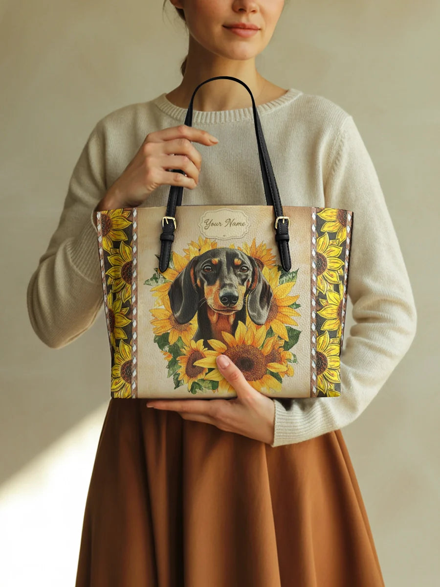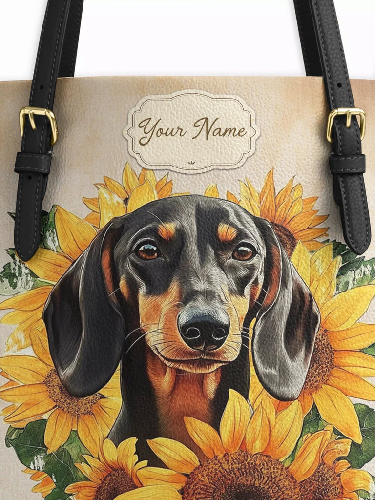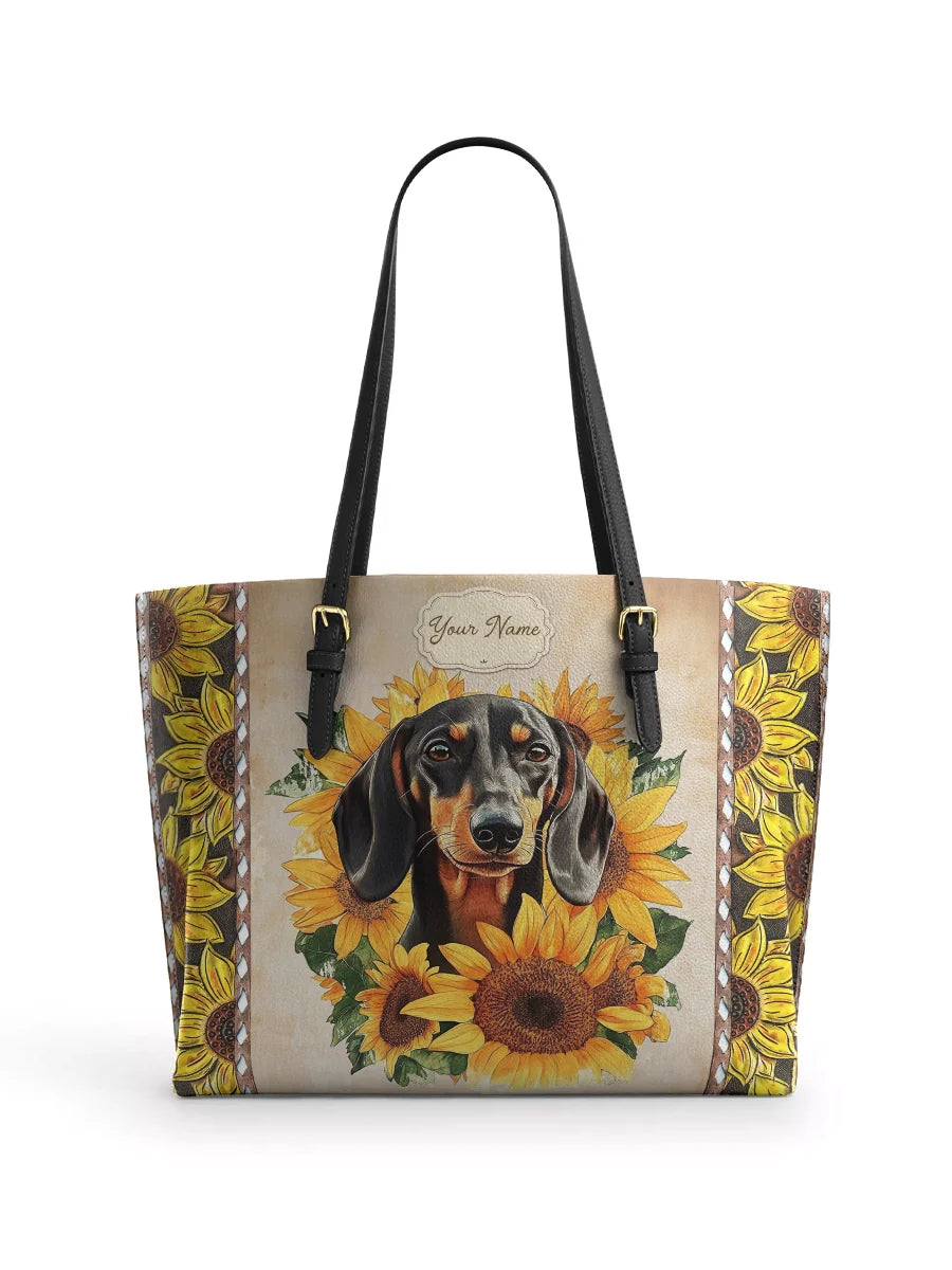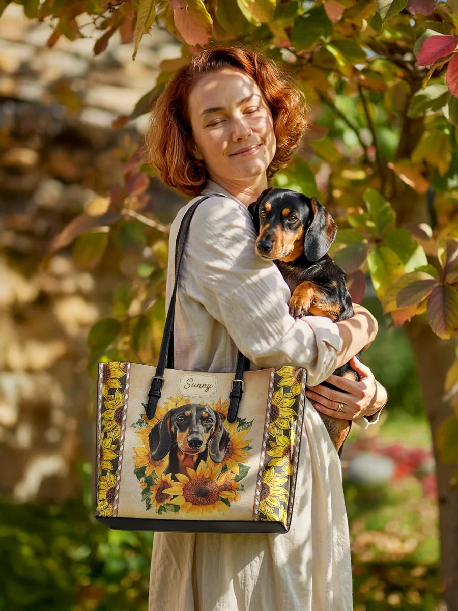 Dachshine Sunbeam Pup Personalized Leather Tote Bag