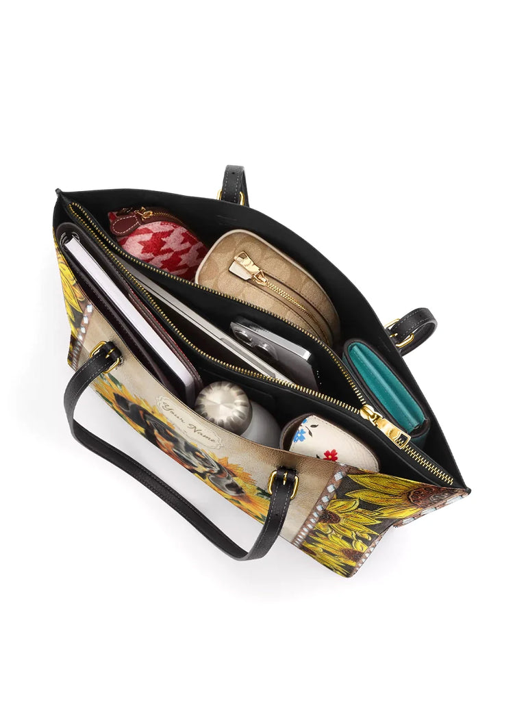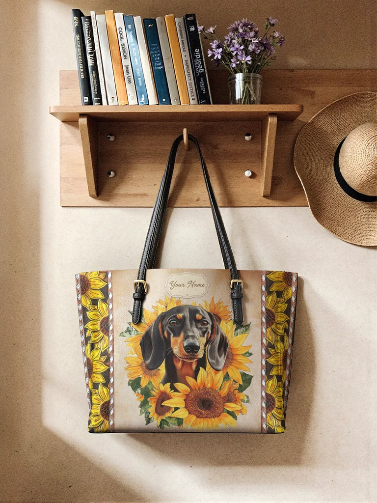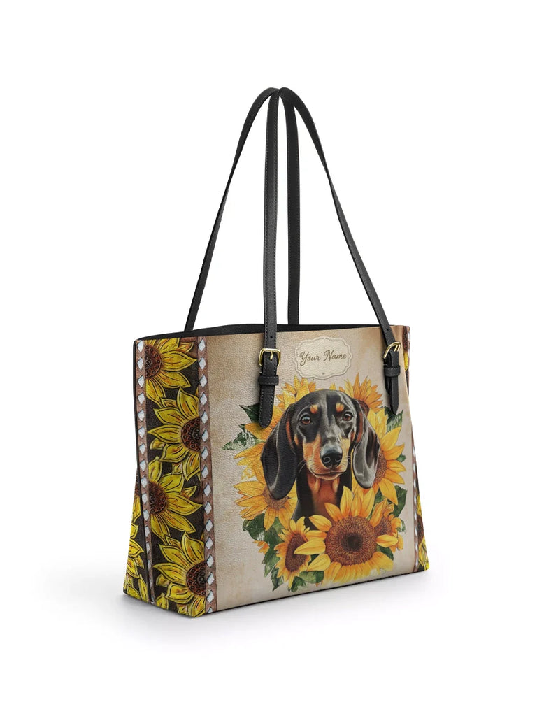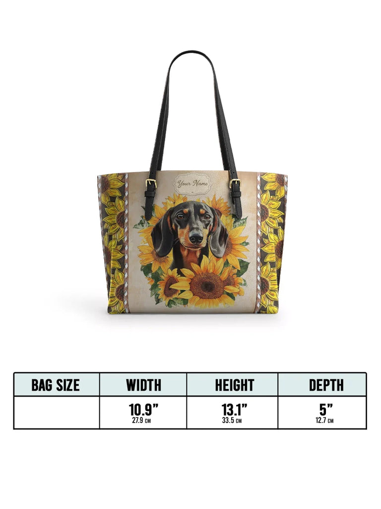 Dachshine Sunbeam Pup Personalized Leather Tote Bag