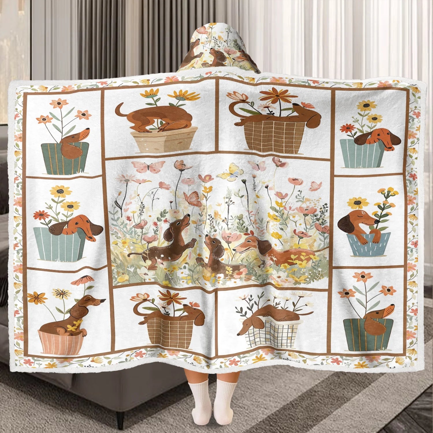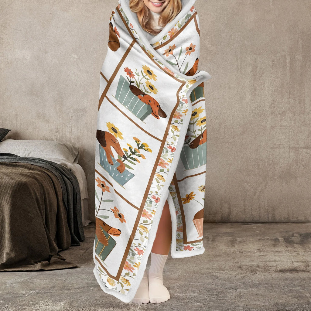 Dachshine Wearable Hooded Blanket - Flowers Dachshunds