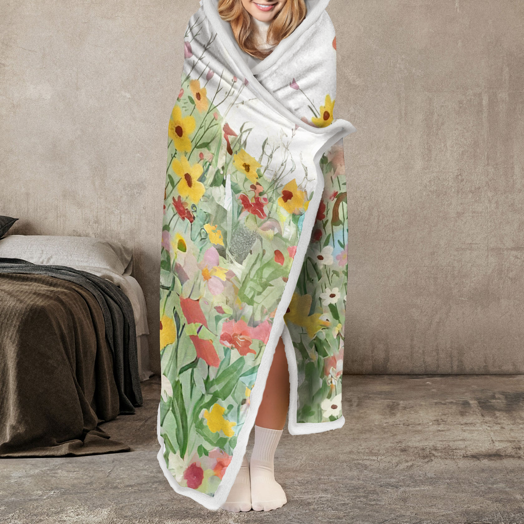 Dachshine Wearable Hooded Blanket - SDachshund in Flower Garden