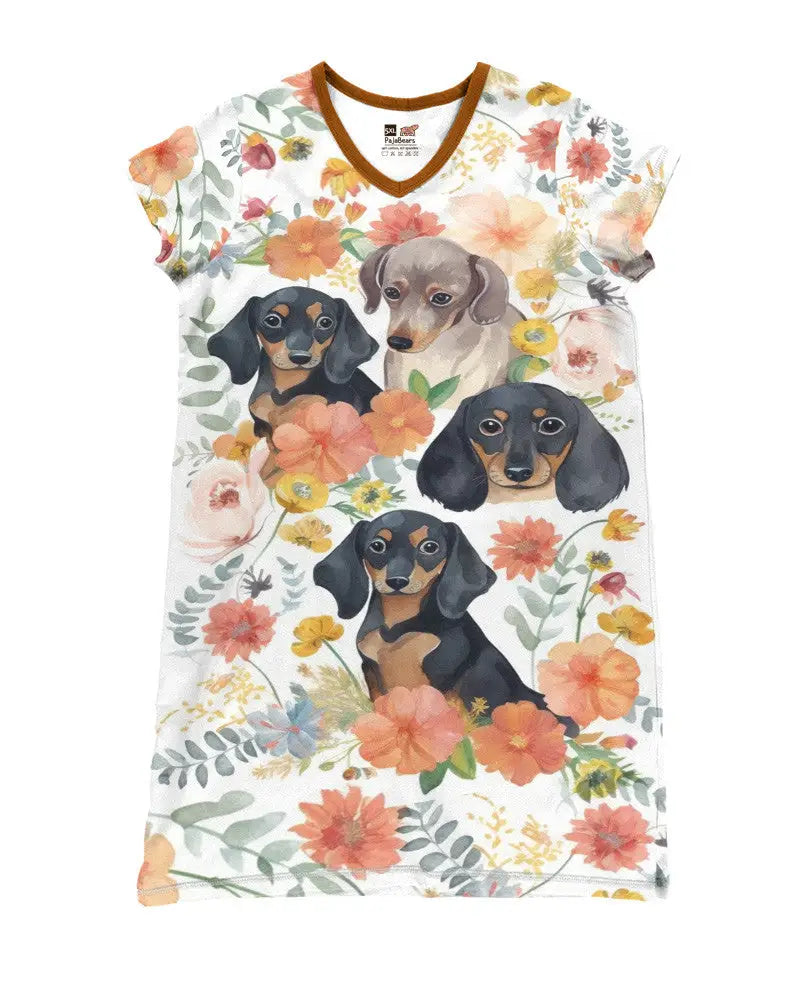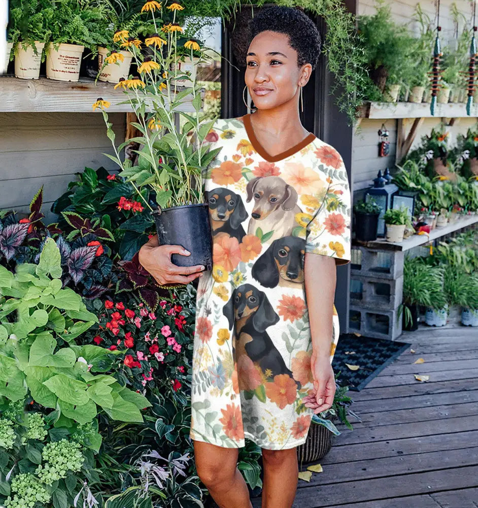 Dachshine Nightshirts V-neck Dachshund Dachshund And Flower