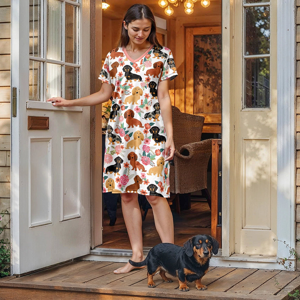 V-Neck Nightshirt โ Light, Easy, and Dachshund-Loving