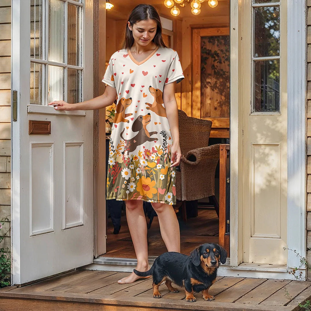 V-Neck Nightshirt โ Light, Easy, and Dachshund-Loving