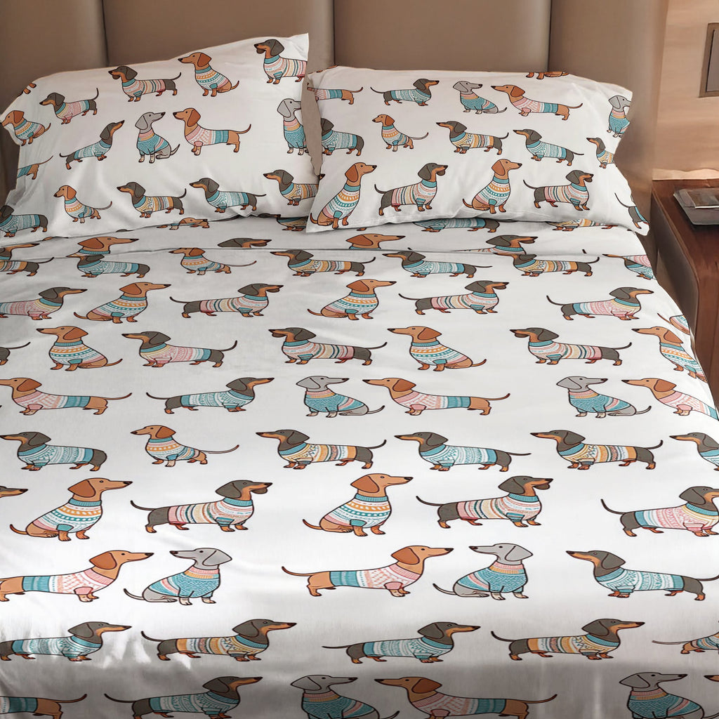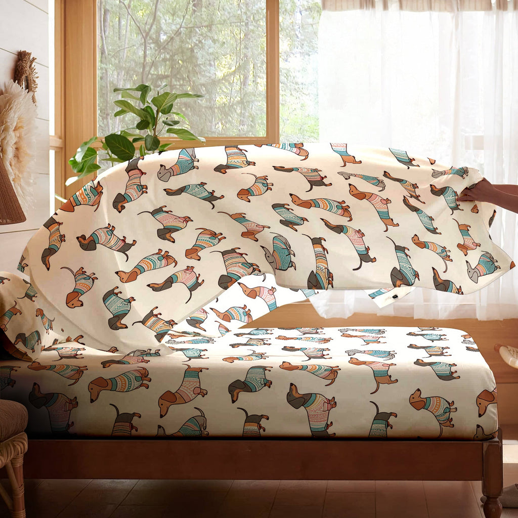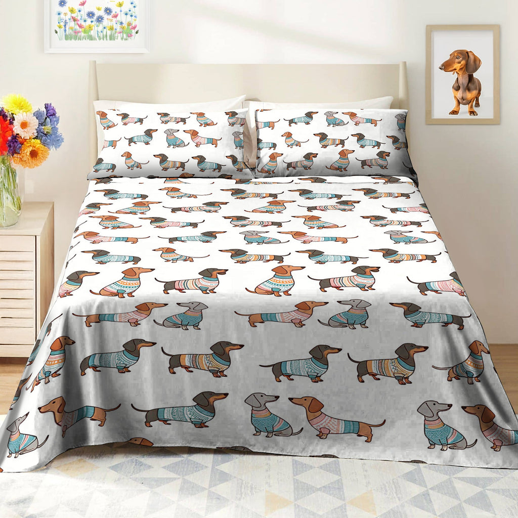 Dachshine 4-Piece Bed Sheet Set - Playful Dachshunds